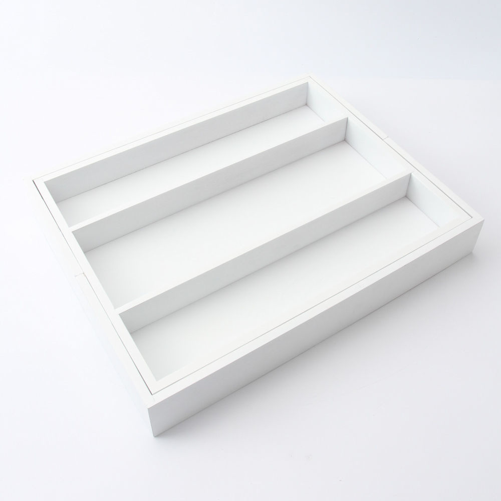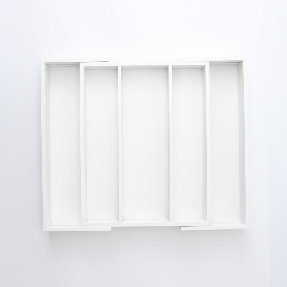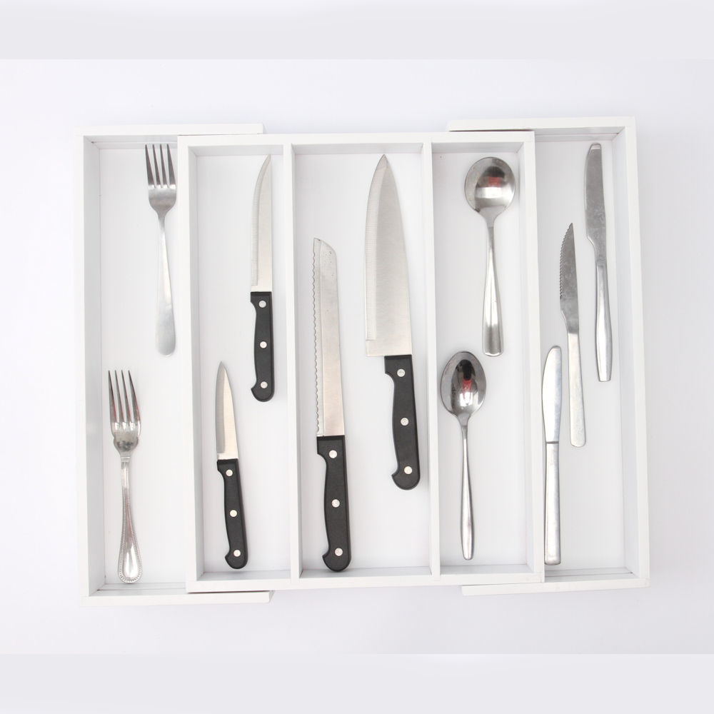 Decopatent Decopatent® Uitschuifbaar bestekbak - Besteklade - 3 Vaks -> Uitschuifbaar naar 5 Vakken - Bestekbakken organizer - Bamboe - Wit