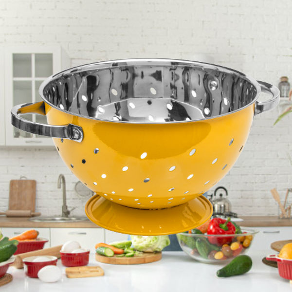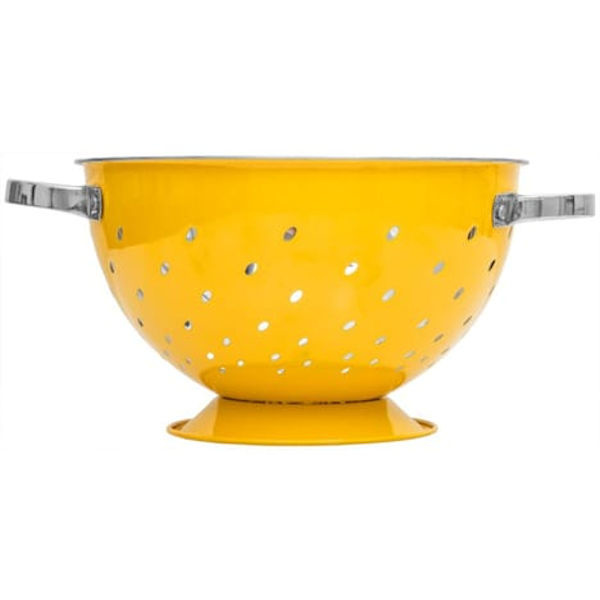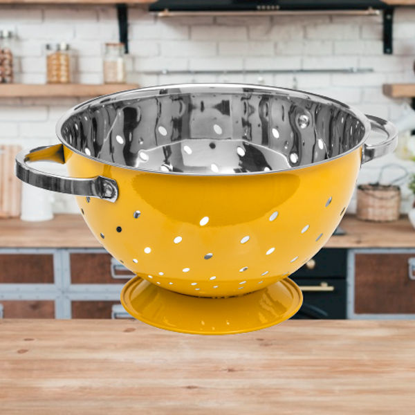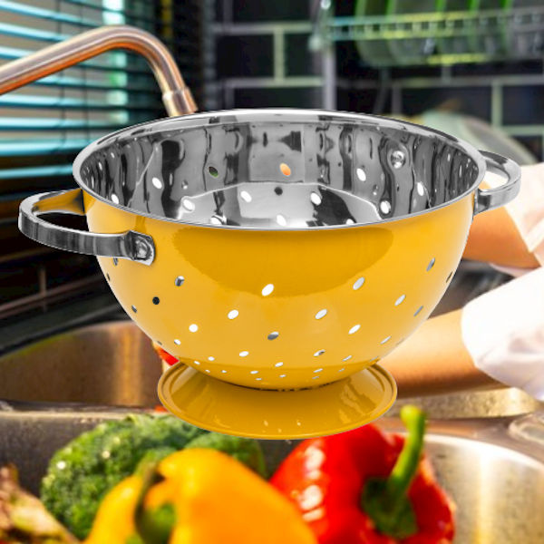 ✅ Rvs Vergiet Ø25 cm ✅ Roestvrij stalen Vergiet Zeef met 2 handvaten ✅ Voor het wassen / afspoelen van Groenten en Fruit ✅ Of voor het afgieten van pasta's ✅ Retro Design ✅ Kleur: Geel