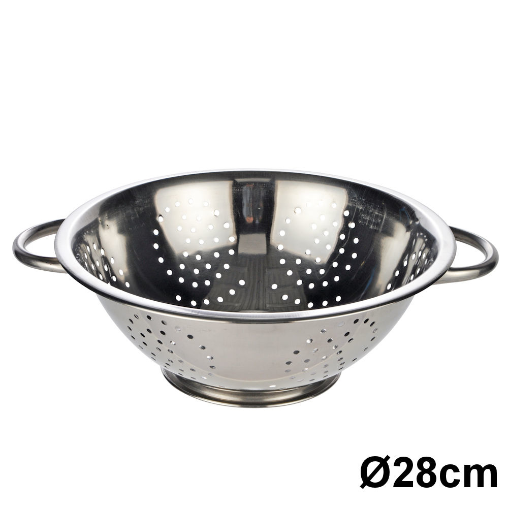 ✅ Rvs Vergiet Ø28 cm ✅ Roestvrij stalen Vergiet Zeef met 2 handvaten ✅ Voor het wassen / afspoelen van Groenten en Fruit ✅ Of voor het afgieten van pasta's ✅ Retro Design ✅ Kleur: Zilver