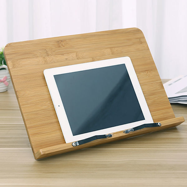 Deze luxe boekenstandaard is gemaakt van bamboe hout en zeer geschikt voor gebruik in de keuken. Je verstelt hem makkelijk in hoogte en daarmee is hij ideaal om je kookboek op te plaatsen. Door zijn mooie uiterlijk is hij uiteraard ook geschikt om in de woonkamer of slaapkamer neer te zetten.