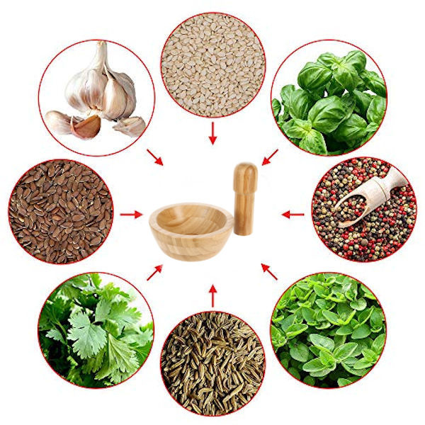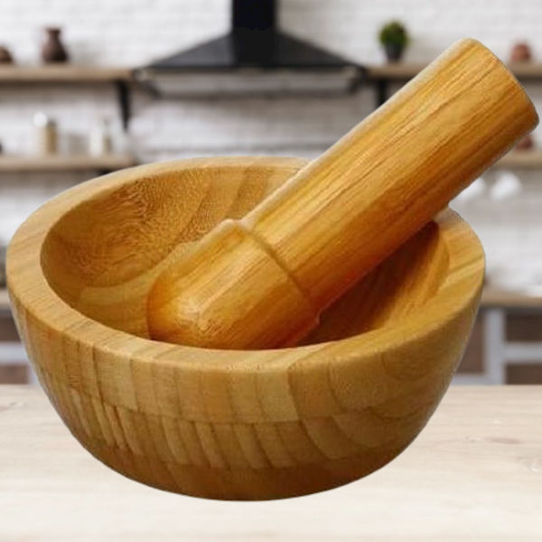 ✅ Bamboe Vijzel met stamper, voor het fijnstampen van kruiden en ingrediënten