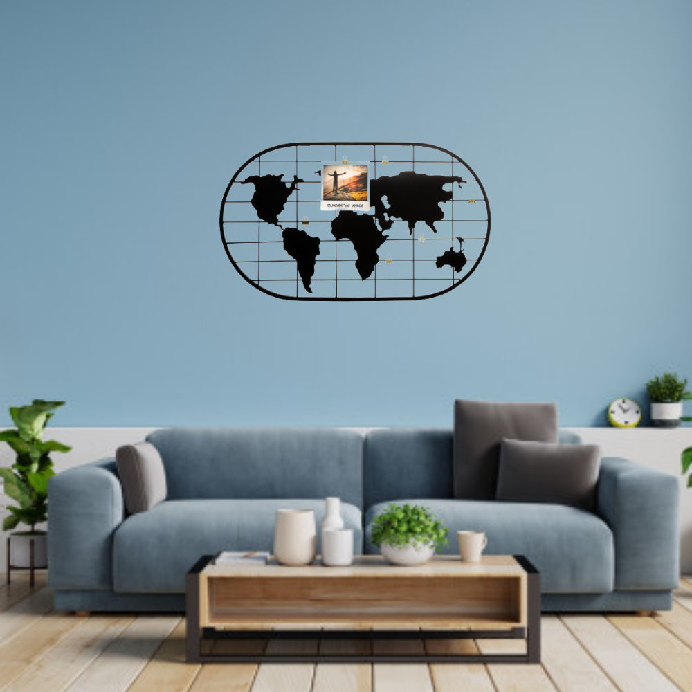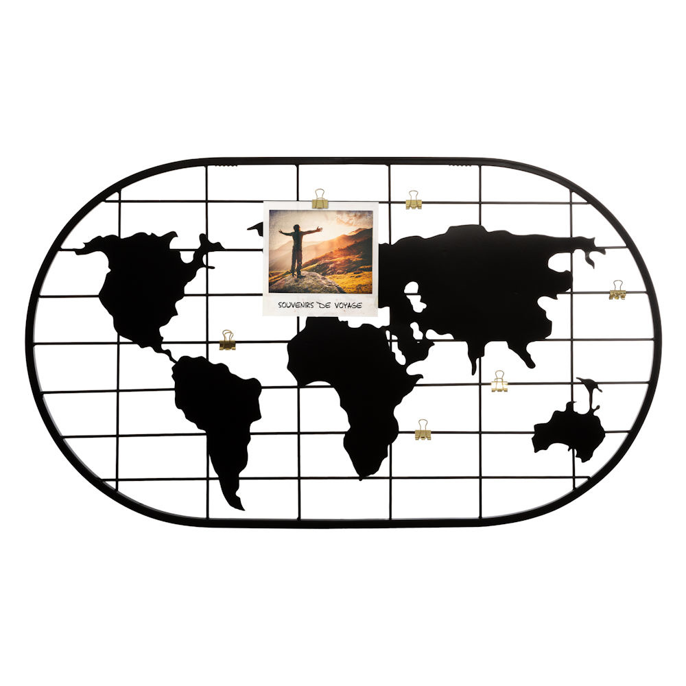 Maak een persoonlijke foto collage wanddecoratie met dit unieke wereld foto wandrek. Dit wereld wandrek is gemaakt van metaal en voorzien van gouden clips, om al je foto´s eenvoudig op te hangen.