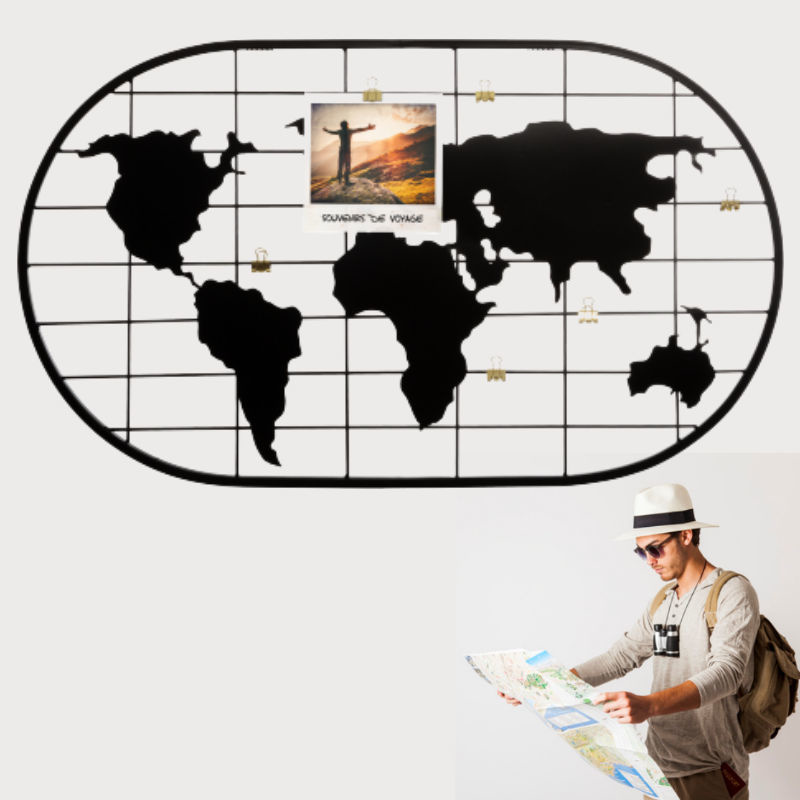 Met dit originele Wereld foto wandrek, verander je je lege muur in een handomdraai in een prachtige en gezellige plek. Op dit originele foto wandrek van metaal, kun je eenvoudig je kaarten, foto’s of notities ophangen met de meegeleverde gouden ophang clips.