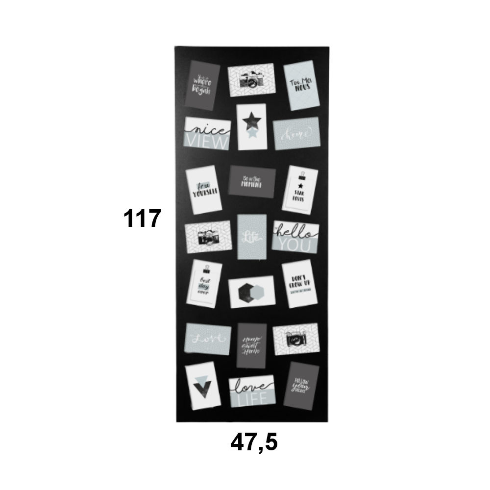 In deze collagelijst plaats je 21 van je meest dierbare foto's. Bijvoorbeeld van je familie, vakanties of je huisdieren. Hang de lijst vervolgens op een mooie plekje aan de muur en je wordt vaak herinnerd aan de mooie dingen in je leven!