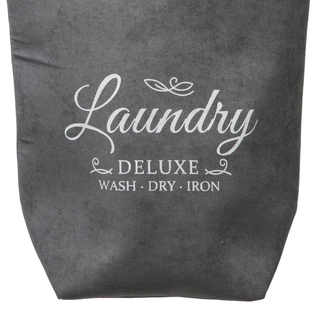 Decopatent Decopatent® XL Wasmand 80L - Tekst Deluxe Laundry -> Wash Dry Iron - Waszak met handvat - Grote Badkamer Wasmand - Velours - Grijs