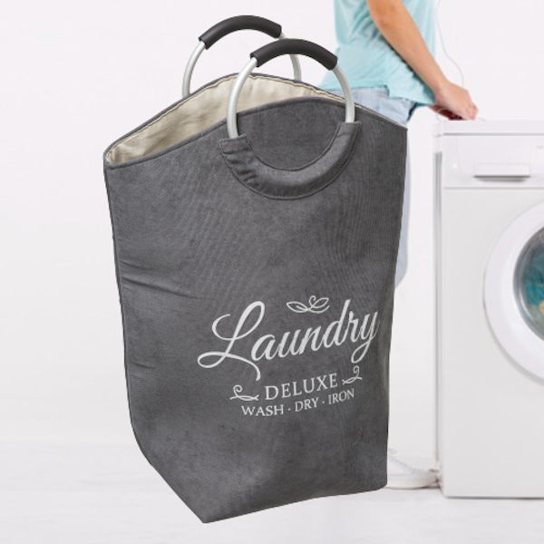 ✅ Grote Wasmand met een prachtige Tekst: "DELUXE LAUNDRY , WASH DRY IRON" voor al uw vieze was. ✅ Kleur: Grijs ✅ Inhoud 80 Liter.