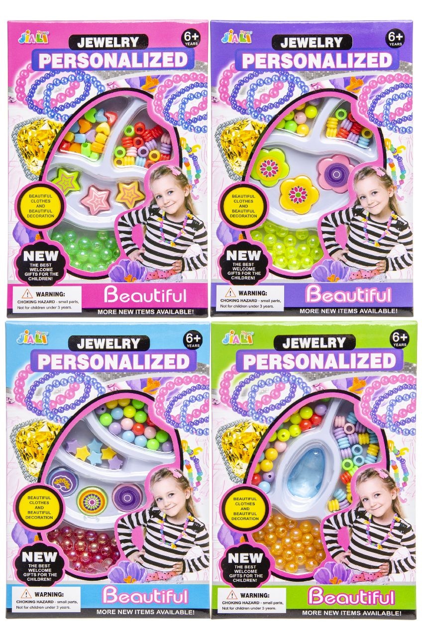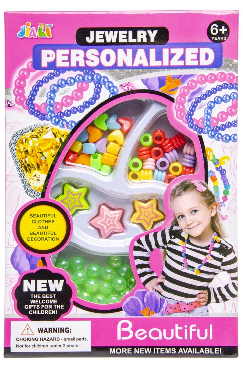 Deze kralenset met de naam “jewelry personalized” is ideaal voor een kind dat graag creatief bezig is en zelf sieraden wil ontwerpen. De set bestaat uit een uitgebreide selectie kleurrijke kralen in verschillende vormen, zoals bloemen, sterren, hartjes en ronde pearls. Daarnaast bevat de verpakking ook elastisch draad, zodat er direct een armband, ketting of sleutelhanger gemaakt kan worden. Alles wordt overzichtelijk gepresenteerd in een sorteerdoosje met meerdere vakjes, waardoor opruimen makkelijk is.De verpakking heeft een vrolijk en uitnodigend ontwerp met een afbeelding van een kind dat de sieraden draagt, wat meteen laat zien wat er mogelijk is met de inhoud. Door het grote aantal onderdelen is dit niet alleen een leuke individuele activiteit, maar ook perfect om samen met vriendjes of familie te doen.Deze kralenset stimuleert de fijne motoriek, creativiteit en het zelfvertrouwen. Ook zeer geschikt als verjaardagscadeautje, vakantieactiviteit of voor gebruik op school of buitenschoolse opvang. Dankzij het compacte formaat is het makkelijk op te bergen en mee te nemen.Verschillende kleuren/uitvoeringen worden door elkaar geleverd.