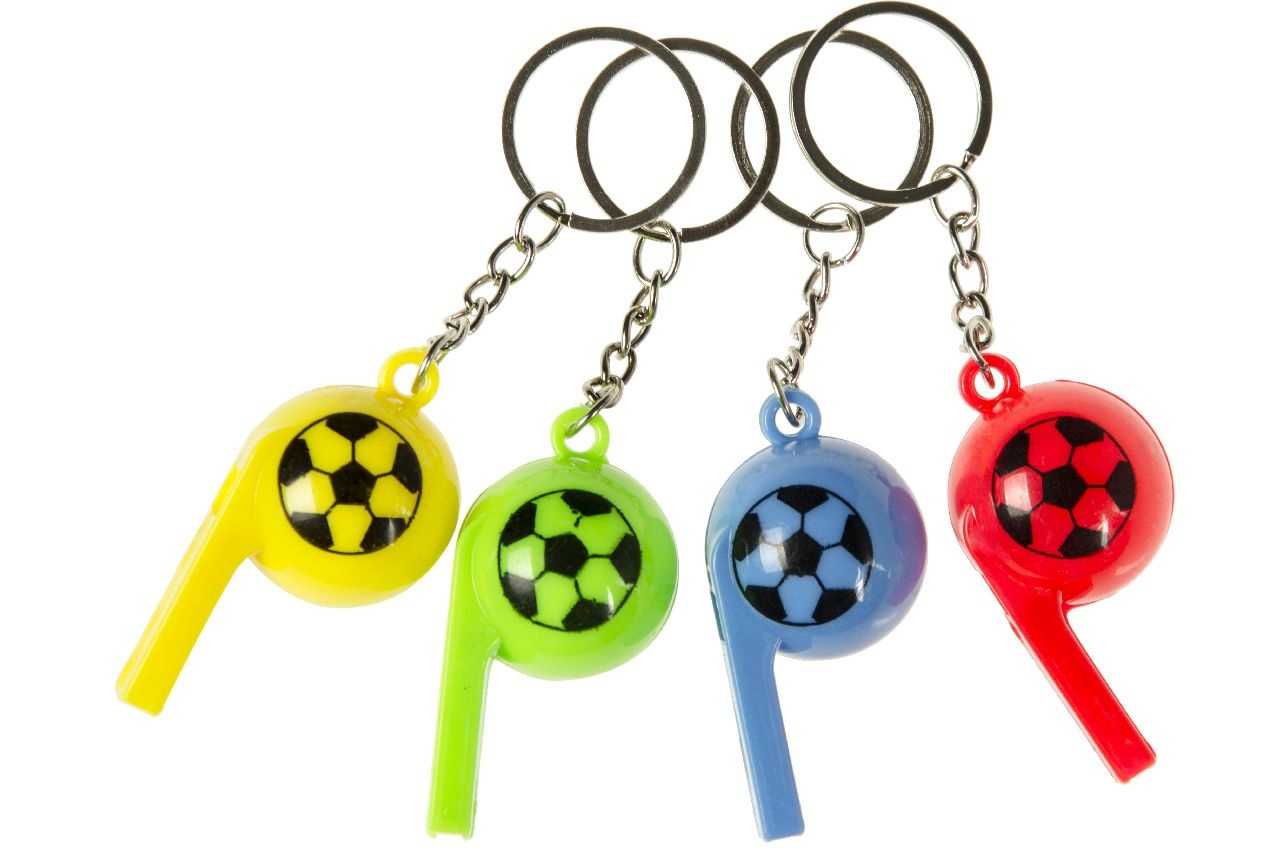Deze sleutelhanger met fluitje en voetbaldesign is een leuke en opvallende accessoire voor aan een sleutelbos, tas of traktatie. Het fluitje is volledig functioneel en voorzien van een afbeelding van een voetbal, wat het perfect maakt voor sportliefhebbers en voetbalfans. Het compacte formaat zorgt ervoor dat het gemakkelijk meegenomen kan worden, terwijl de stevige metalen ring zorgt voor een veilige bevestiging. Ideaal als klein cadeautje tijdens sportdagen, kinderfeestjes of evenementen. De combinatie van fluitje en sleutelhanger maakt het niet alleen decoratief, maar ook praktisch bruikbaar bij spelletjes of buitenspel. De verschillende kleurcombinaties maken het een vrolijk uitdeelcadeautje dat altijd in de smaak valt.Verschillende uitvoeringen/kleuren worden door elkaar geleverd.