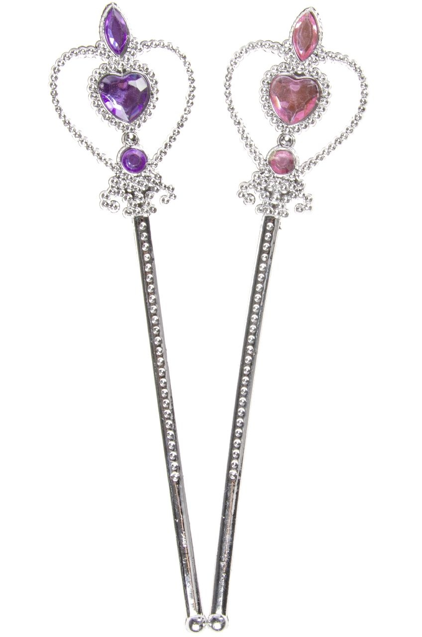 Deze glinsterende toverstafjes zijn perfect voor kleine prinsessen en feeën. De stafjes zijn zilverkleurig en versierd met fonkelende edelstenen in hart- en diamantvorm, afgewerkt met sierlijke details. Ideaal voor verkleedpartijtjes, themafeesten of als