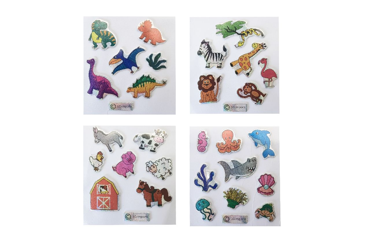 Deze glitter stickers zijn ideaal voor creatieve knutselactiviteiten en versieringen. Elke sticker is voorzien van een vrolijke, kleurrijke dierenafbeelding en heeft een glinsterende afwerking die direct opvalt. De set bestaat uit diverse dierenthema’s, waaronder dino’s, boerderijdieren, jungledieren en zeedieren. Door de variatie aan vormen en figuren is dit product perfect om tekeningen, kaarten, schriften of traktaties mee te decoreren. De stickers hebben een plaklaag aan de achterzijde waardoor ze eenvoudig te gebruiken zijn zonder lijm. Door het lichte materiaal en het speelse uiterlijk zijn ze aantrekkelijk voor jonge kinderen tijdens knutseluurtjes op school of thuis. De stickers zijn verpakt per themaveld, waarbij elk vel meerdere dieren bevat met glinsterende details die een extra vrolijk effect geven. Leuk voor traktaties, knutselpakketten of als cadeautje bij kinderfeestjes.Verschillende uitvoeringen/kleuren worden door elkaar geleverd.
