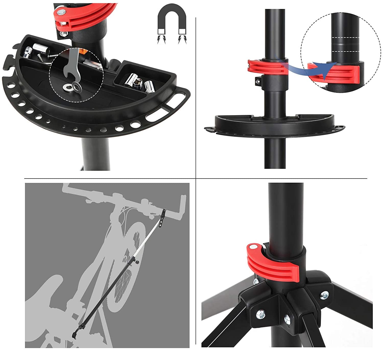 De standaard is eenvoudig in hoogte verstelbaar. Om hem in hoogte te verstellen gebruik je de klem die aan de buis vastzit. Je past de hoogte daarmee aan tussen de 101 en 171 cm. Zo stel je fietsreparatiestandaard eenvoudig in op de juiste werkhoogte.