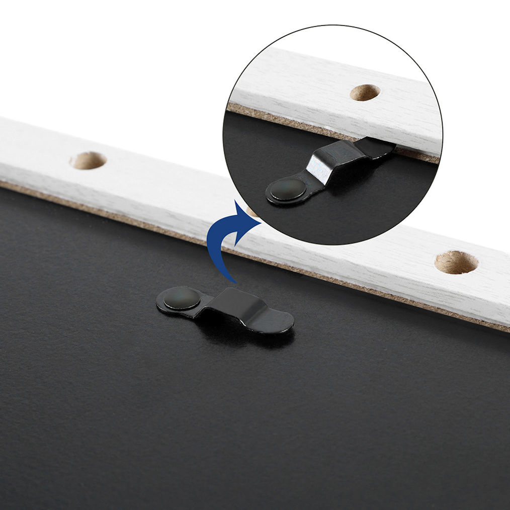 Een foto in de lijst plaatsen is erg makkelijk. Aan de achterzijde van elk kader zitten 4 klemmetjes. Deze klemmetjes open je. Vervolgens verwijder je de achterkant uit het lijstje en leg je de foto in het kader. Tenslotte plaats je de achterkant weer op het kader en maak je de klemmetjes vast.