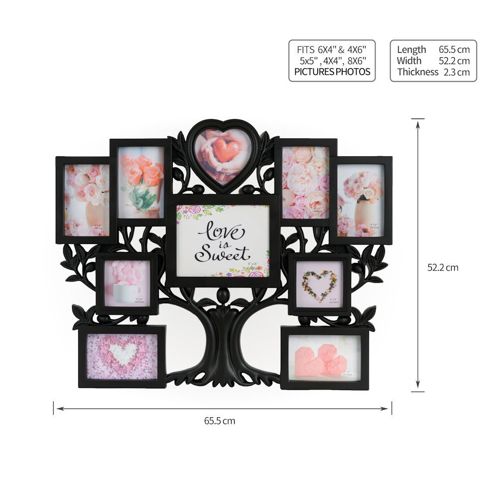 Decopatent Fotolijst collage voor 10 Foto's van verschillende maten - Fotolijsten Collage Geschikt voor foto formaat 10x10 / 15x10 / 13x13 / 10x10 / 20x15 Cm - Fotogalerij Collagelijst - Fotolijstje met 10 fotokaders - Fotokader - Family Tree - ZWART - Decopatent®