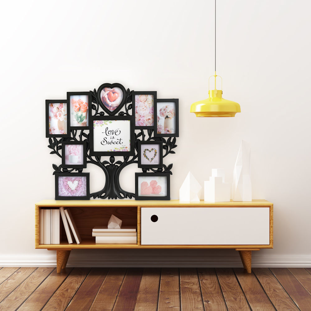 Alle foto‘s van die geweldige momenten welke je met je familie, vrienden of op vakantie hebt meegemaakt slingeren nu nog vaak rond in je la of op de harde schijf van je computer of telefoon? Deel met deze grote fotolijst deze prachtige foto's met de nieuwsgierige kijkers! Creëer zelf een persoonlijke fotocollage met behulp van deze uiterst decoratieve fotolijst. Hij biedt ruimte voor in totaal 10 foto‘s. Dankzij de haak aan de achterkant, hang je hem eenvoudig aan je muur in jouw woonkamer, keuken of slaapkamer.