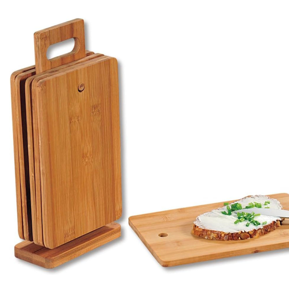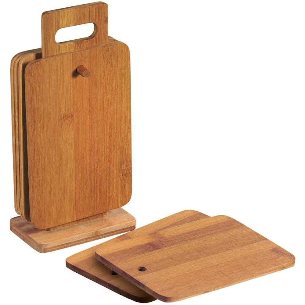 FSC® Bamboe Snijplanken Set - 7-delig - Met 1x standaard & 6x Bamboe Houten Snijplanken - Afm. Snijplanken: 22 x 14 x 0.8 Cm.