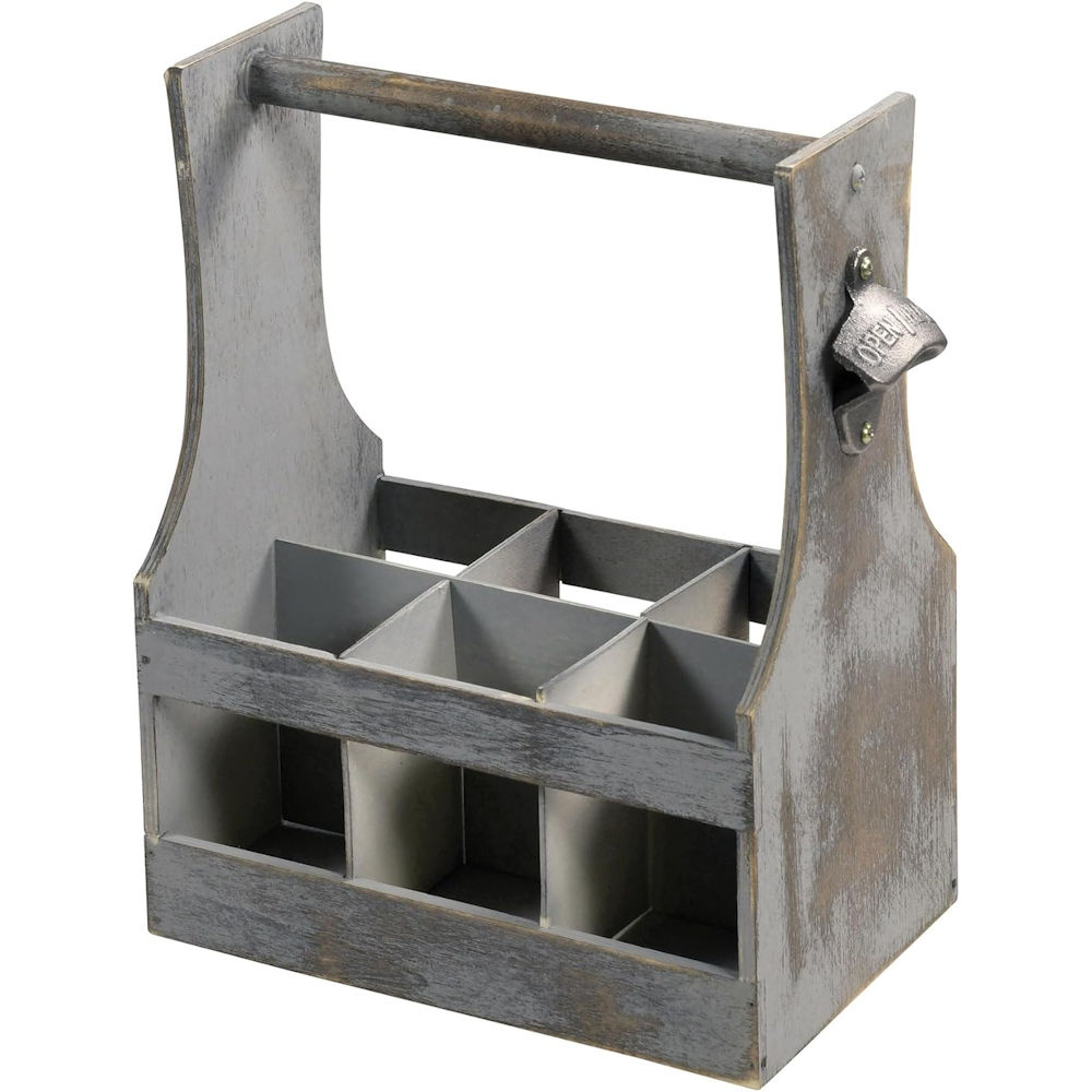 Kesper FSC® Houten Bierkrat met Bierflessen opener - Bier Flessenhouder voor 6 flessen met opener - Bier butler - Bierkrat Flessen Drager - Bier Krat - Afm. 25 x 16,8 x 32 Cm.