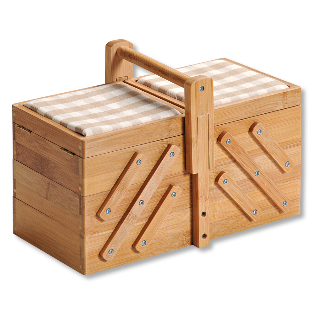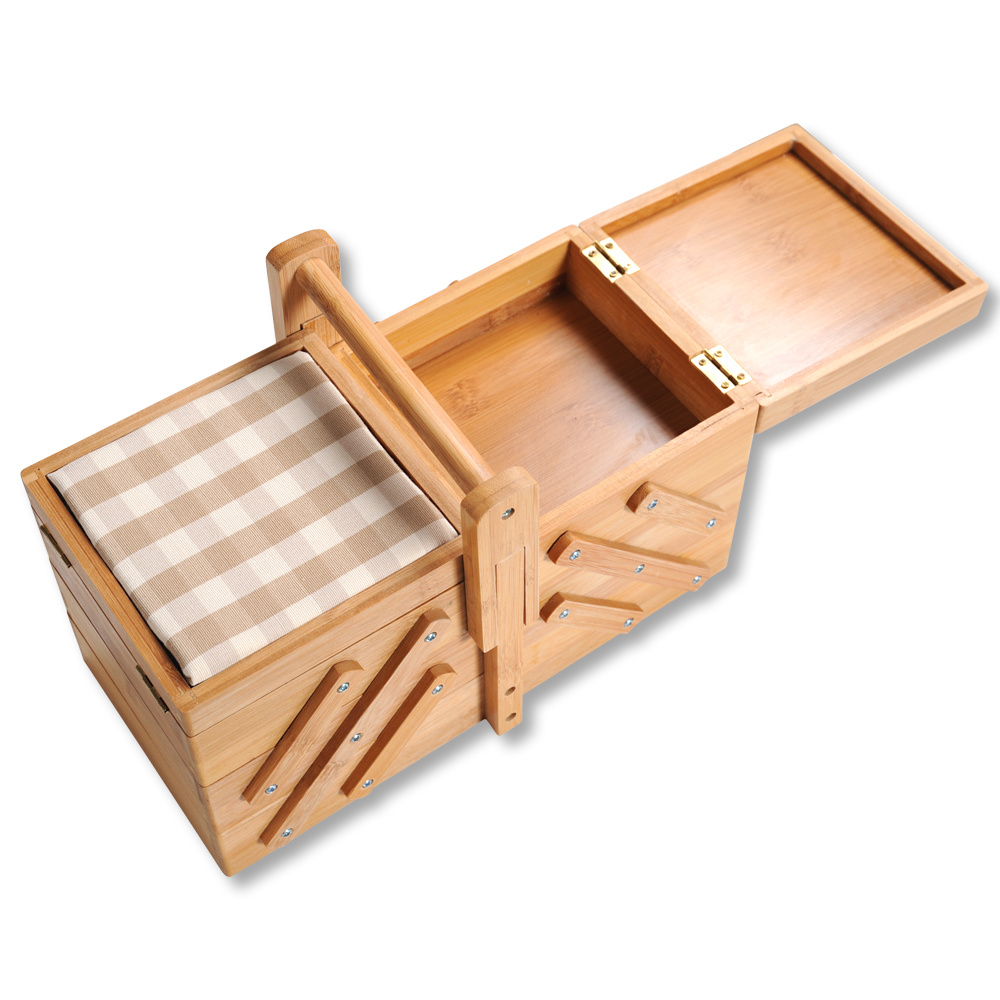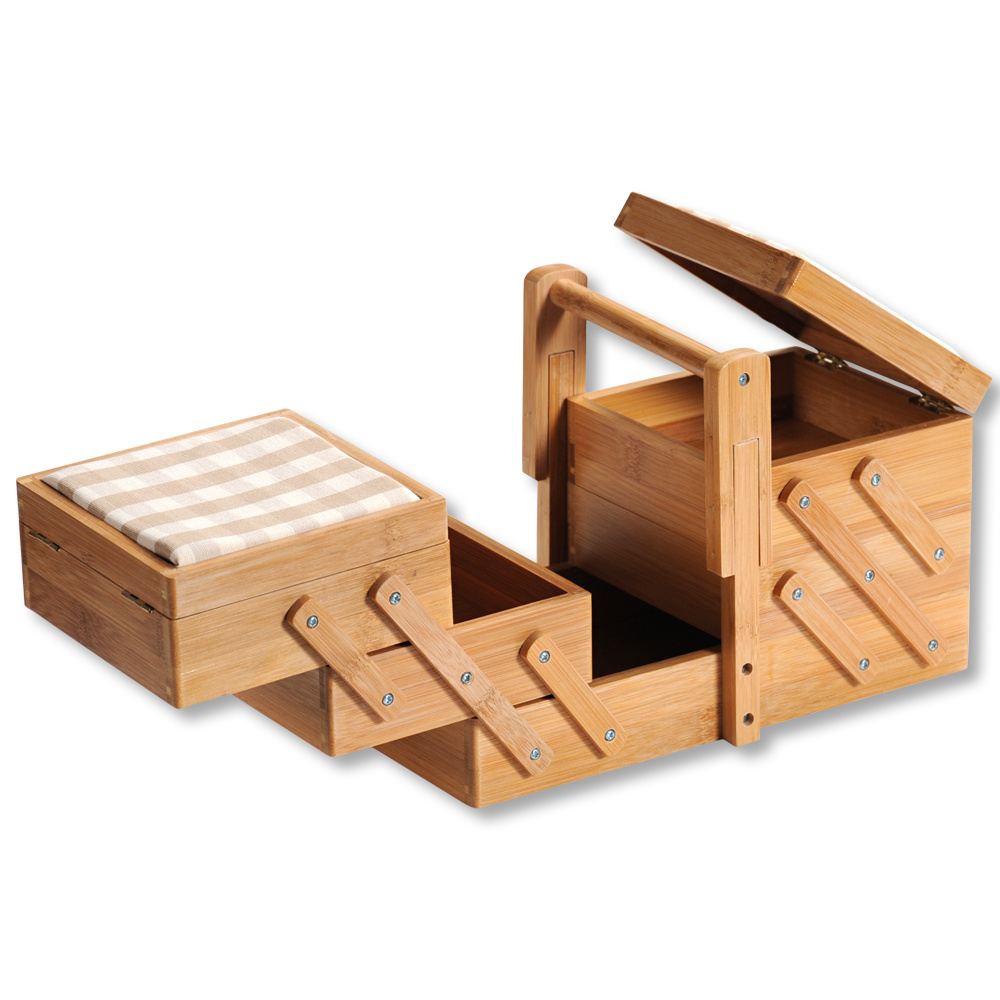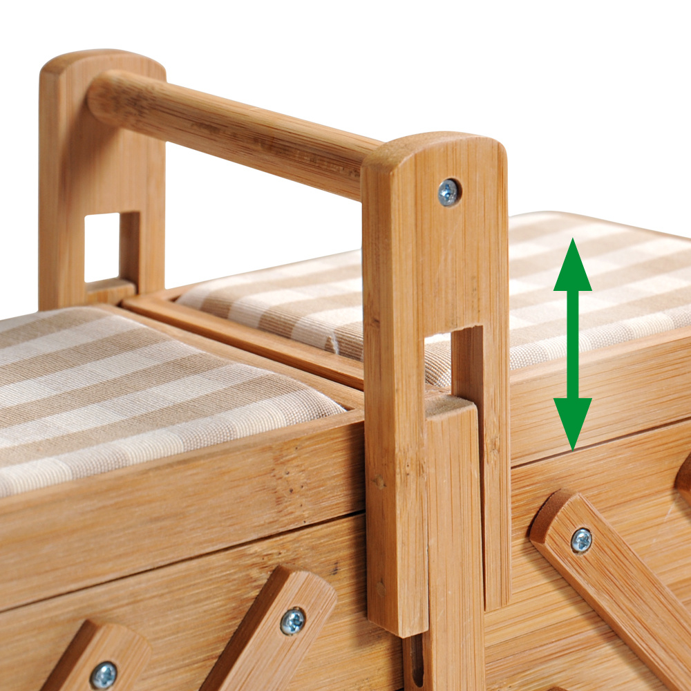 Kesper FSC® Bamboe houten Naaikist - Naaidoos opbergbox 5 vakken - Naaibox met Handvat - Compact uitklapbaar - Naaigarnituur Naaikoffer