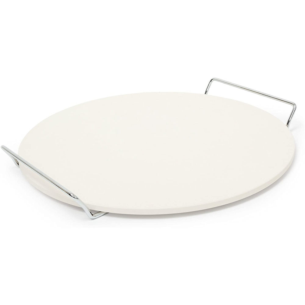 Serveer uw pizza op deze pizzasteen door middel van het bijbehorende verchroomde serveerrek. Deze houder is voorzien van handvatten, zodat je deze pizzasteen makkelijk kan verplaatsen, zonder dat je je handen brandt. Ook is het mogelijk deze pizzasteen te gebruiken voor het bakken van brood en koekjes.