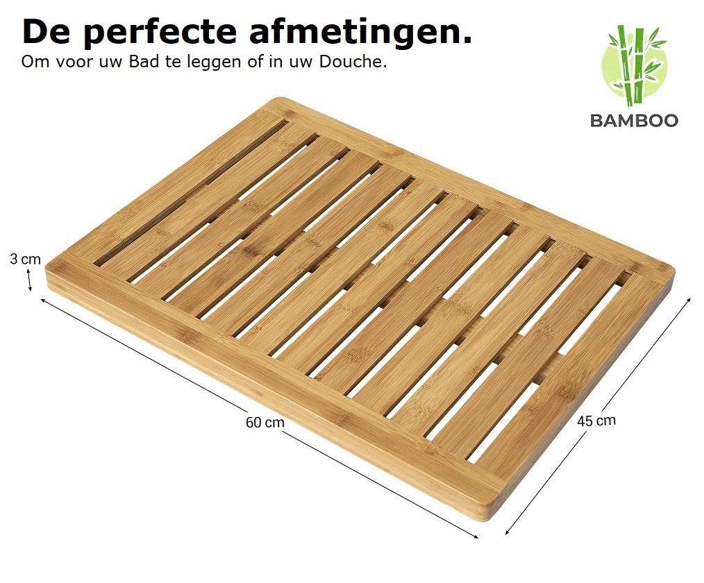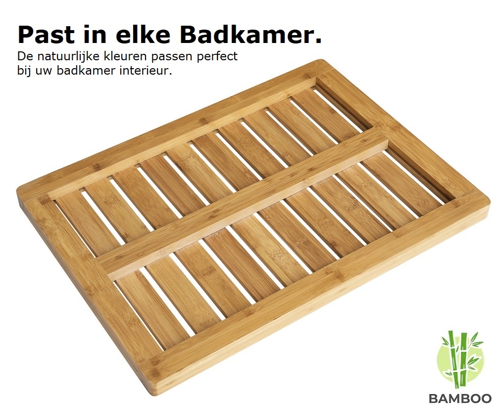 Bamboe hout is ideaal voor gebruik in de badkamer. Het is van nature goed bestand tegen water. Het is dus niet erg dat deze badmat nat wordt. Wel zo handig bij gebruik in de badkamer.