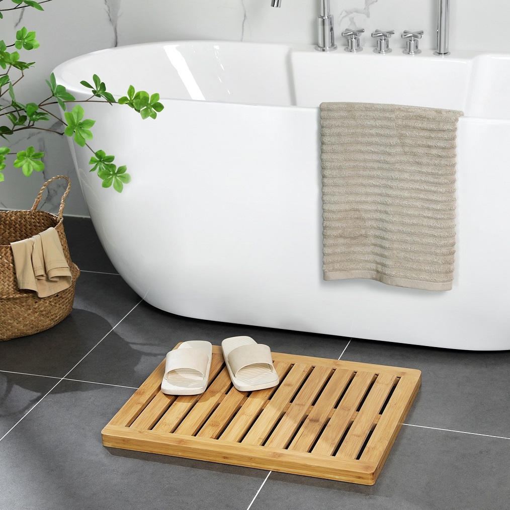 Deze bamboe houten mat is niet alleen geschikt voor gebruik in de badkamer. Je kan hem ook gebruiken bij je jacuzzi, zwembad, sauna of buitendouche. Je kan hem zelfs nog gebruiken in je keuken, op je balkon of in je hal.