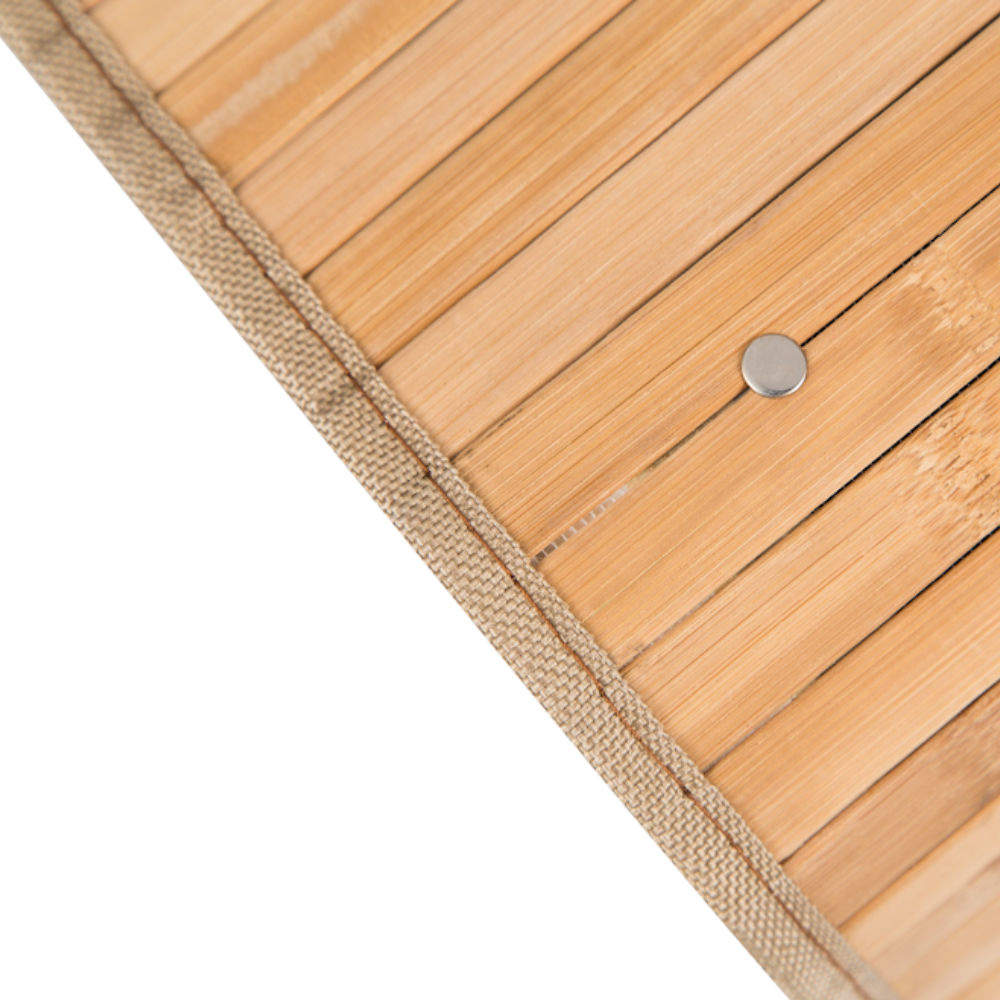 Voorzien van afsluitbare bamboe deksel. De wasmand is tevens eenvoudig te verplaatsen dankzij de twee handvatten aan de zijkanten.