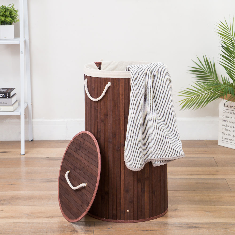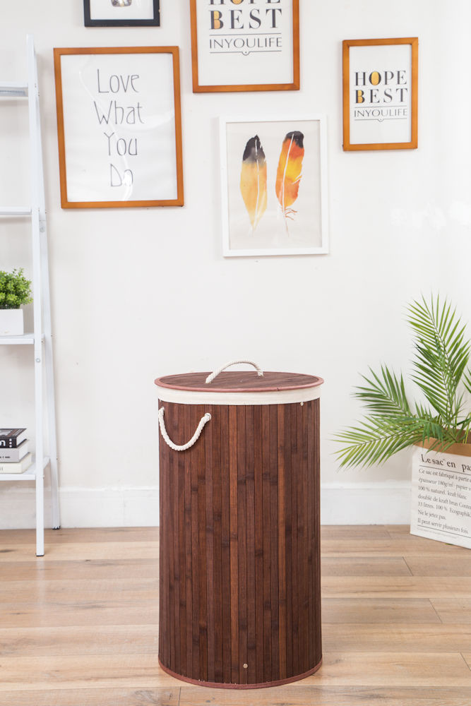 Met deze grote ronde wasmand van bamboe met 1 groot vak, koop je een praktische wasmand voor in jouw badkamer of was ruimte. Bamboe onderscheidt zich naast zijn geweldige uitstraling, vooral door zijn onderhoudsvriendelijke, stevige en vochtresistente eigenschappen. Deze wasmand met deksel en groot vak heeft een verwijderbare waszak. Zo berg je in deze wasmand eenvoudig al jouw vieze was en kleding op.