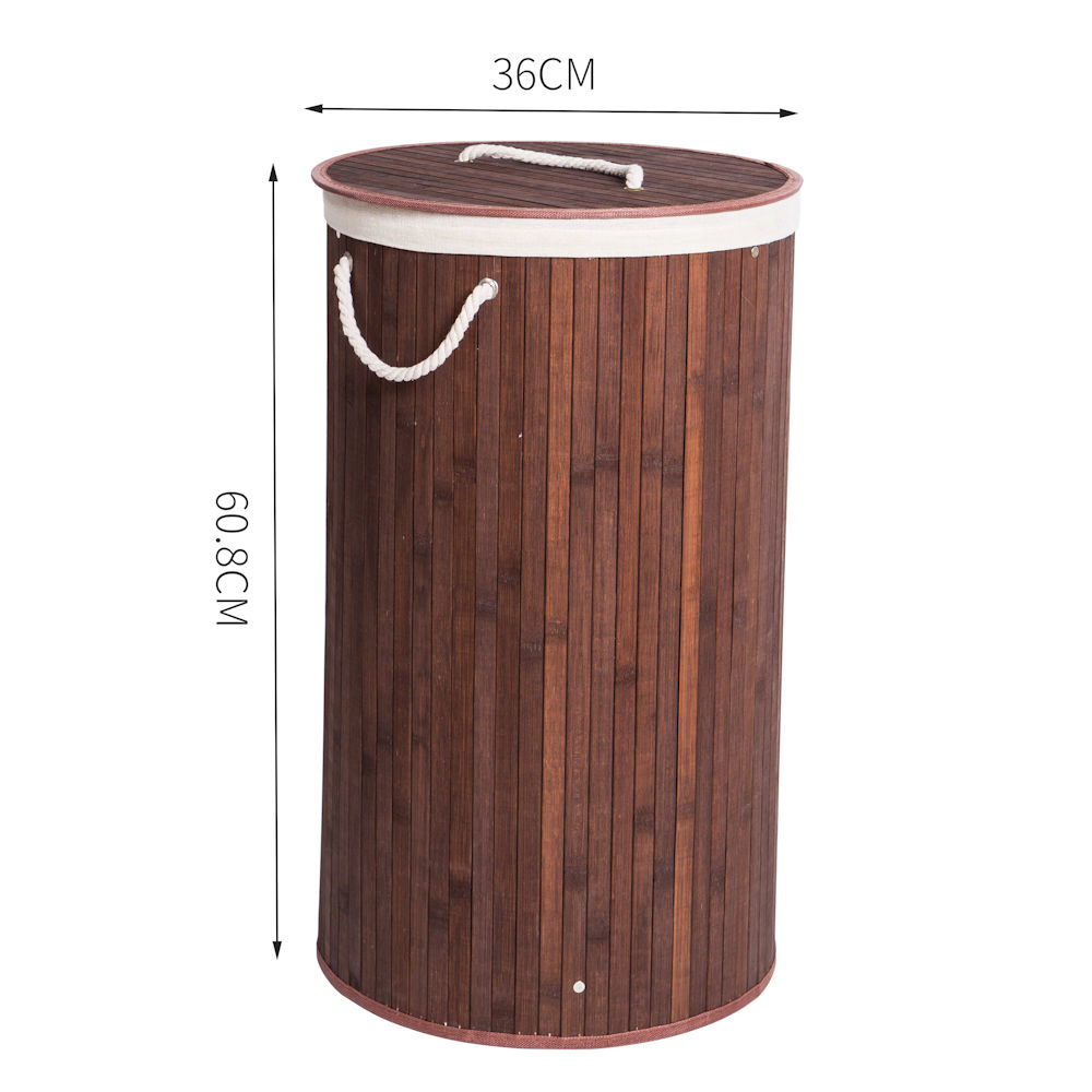 Decopatent Grote Ronde Bamboe Wasmand 1 vak met Deksel & stoffen Waszak - Bamboe wasbox wassorteerder Rond - Inhoud wasmand 80 liter - Wasmand voor wasgoed - Wasmanden Opvouwbaar - Wasmand met deksel - Kleur: Bruin - Decopatent®