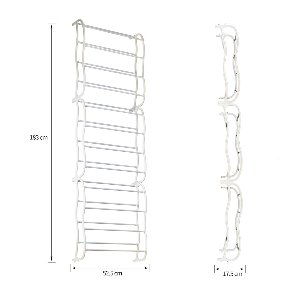 Dit schoenenrek kun je aan de deur ophangen of in een kast monteren. Door de grote opslag capaciteit kun je tot circa 36 paar schoenen opbergen. Het rek bestaat uit 3 losse onderdelen die samen een stevige constructie vormen.