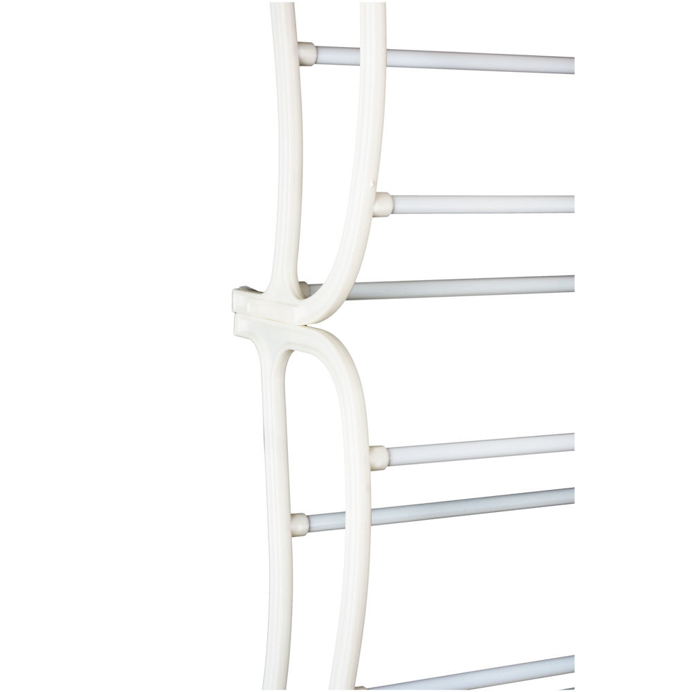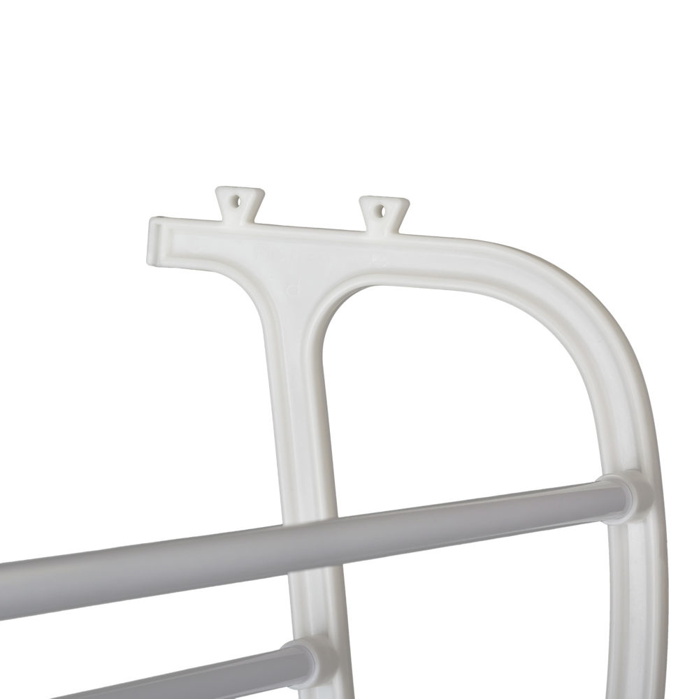Het hangende schoenrek is erg praktisch. Hij is namelijk erg stabiel en niet te zwaar. Door de witte buizen heeft het rek een mooie uitstraling.