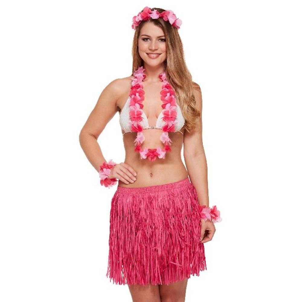 Henbrandt 5-DELIGE VOLWASSENEN HAWAI SET. Bestaande uit: 1x Hawai Rokje, 1x Hawaïkrans, 2x Hawaii Armbanden, 1x Hawaii Hoofdband. Kleur: Rose.