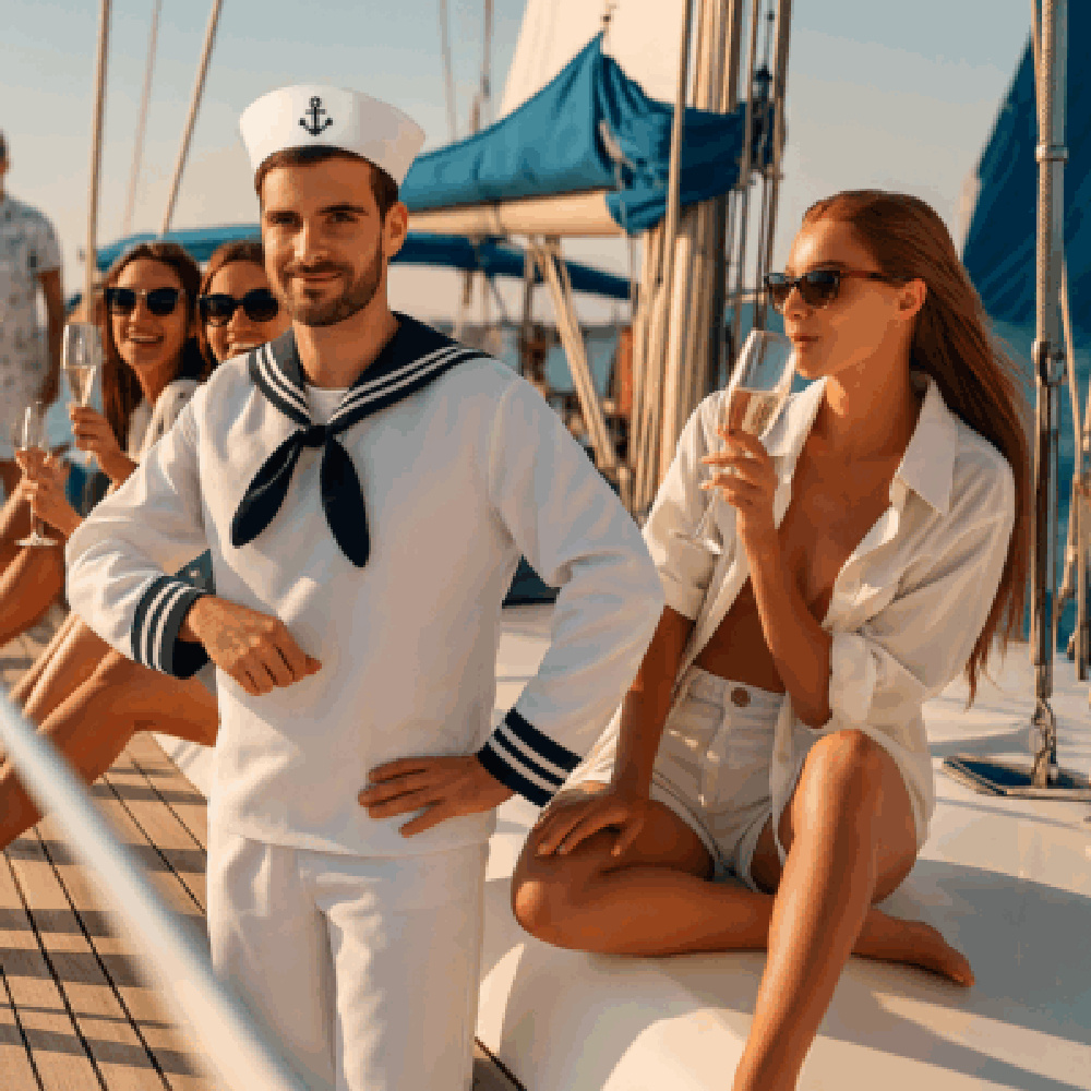 Kortom: een compleet, comfortabel en stijlvol matrozen kostuum waarmee je gegarandeerd de show steelt!