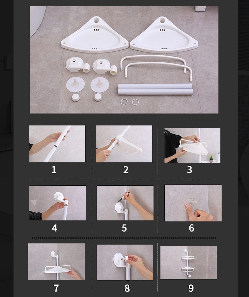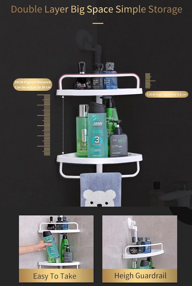 ✅ Hoek Doucherekje 2 Laags voorzien van zuignappen ✅ Waarbij u geen gaten hoeft u te boren in uw muur. Montage is dus super simpel en snel, van dit zelfklevende hoek doucherek. Want u doet dit eenvoudig Zonder te boren ! Het douche rek heeft een mooi strak design en is gemaakt van kunsstof. Daarnaast zijn de 2 etages in hoogte verstelbaar !