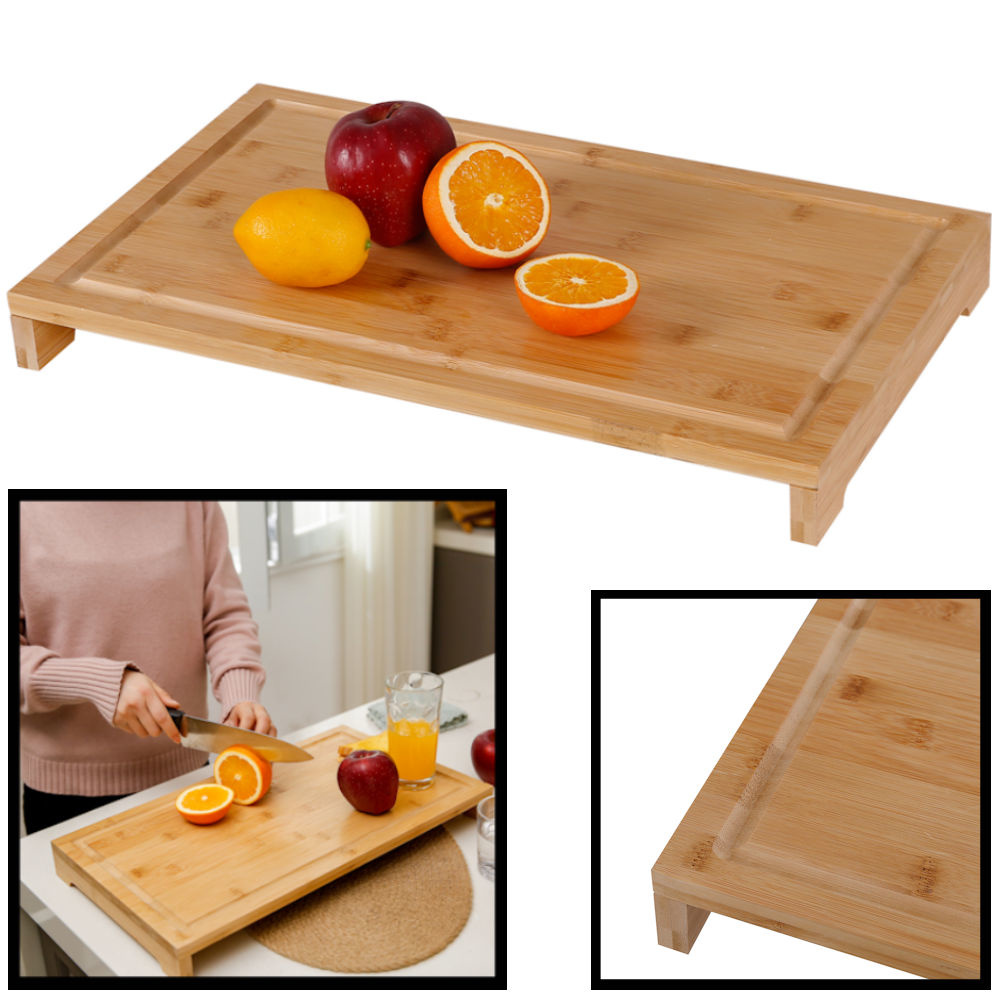 Decopatent Houten snijplank van Bamboe hout met saprand - Stevige kwaliteit - Groot & duurzaam - Keukenplank - Snijplank: Groente / Fruit / Brood - Houten aanrechtplank - Afm. 29 x 50.5 x 5 Cm - Decopatent®