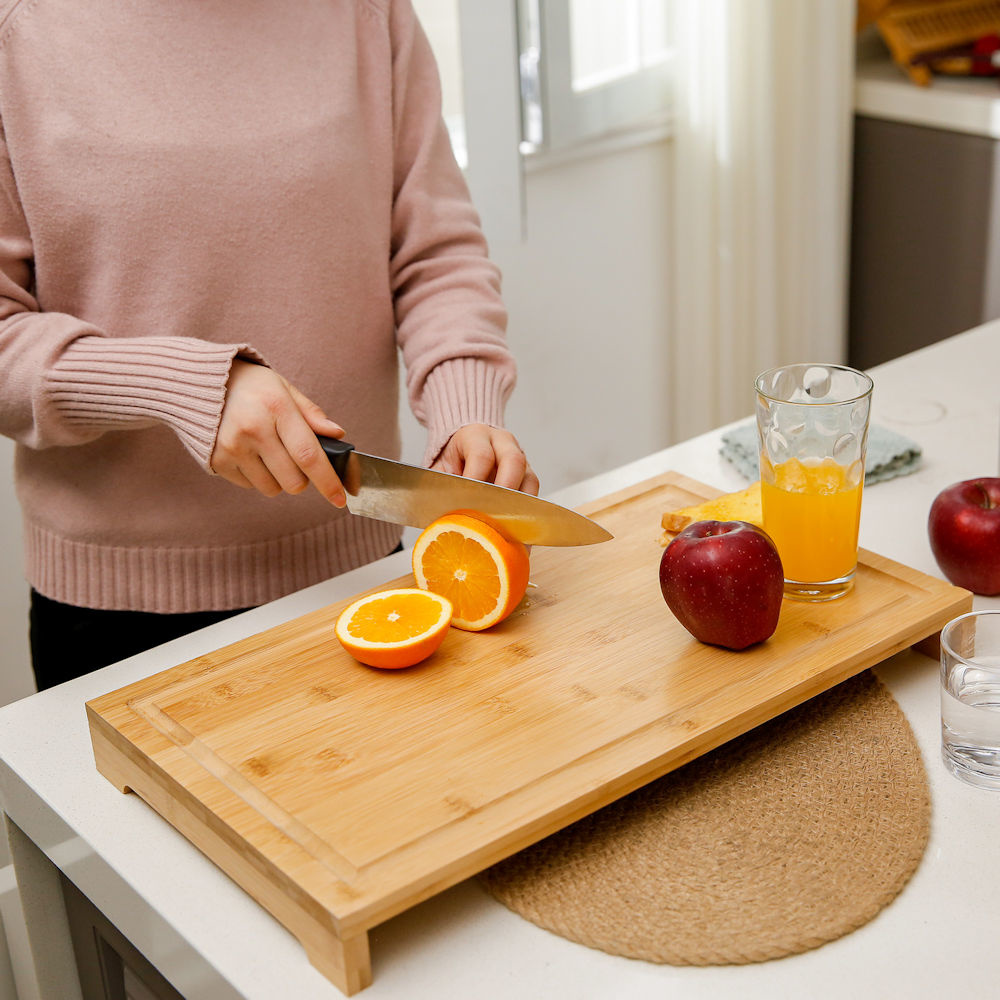 De snijplank is maar liefst 50,5 centimeter breed en 29 cm lang. Daarmee heeft hij een zeer groot snijoppervlak. Handig bij het bereiden van een heerlijk diner. Je weet namelijk zeker dat je genoeg ruimte hebt op je snijplank om alles voor het diner goed en netjes voor te bereiden.