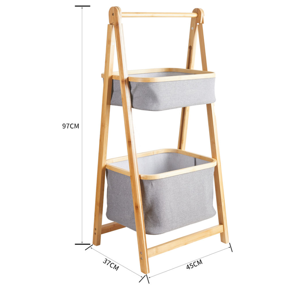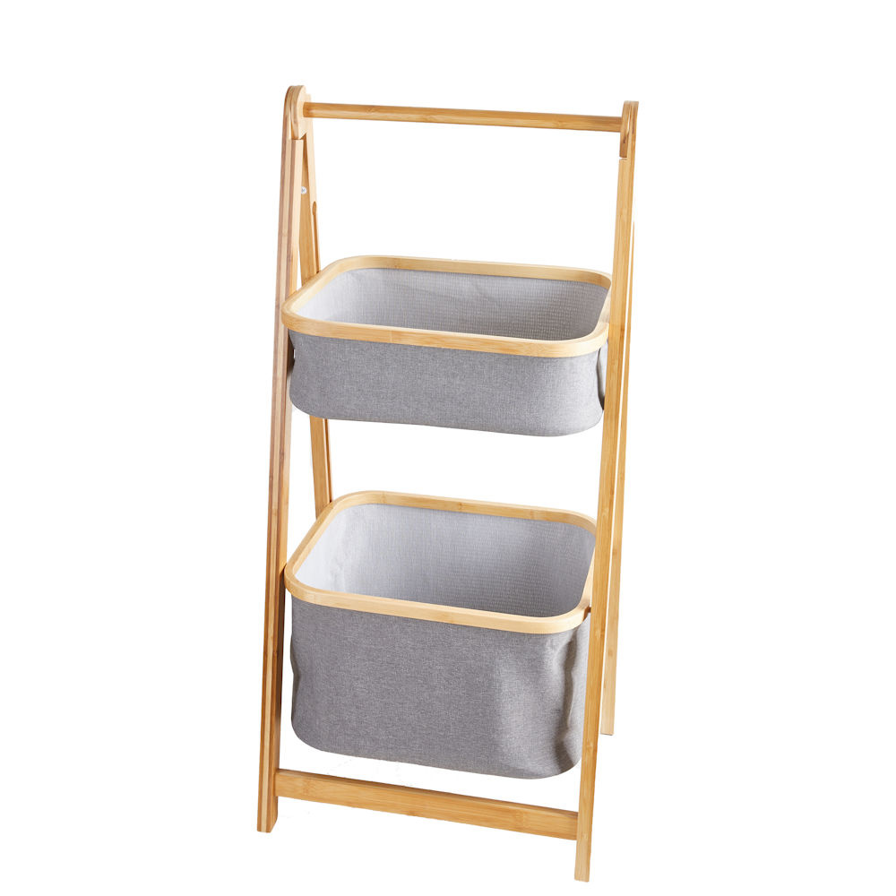 ✅ Bamboe houten staand opbergrek met 2 textiele mandjes. Geschikt voor in de keuken, badkamer of woonkamer!