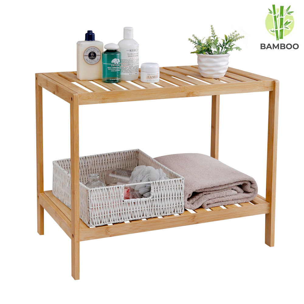 Decopatent Houten bankje van bamboe hout - Badkamer opbergrek - Badkamerkast Rek - Open badkamerbankje voor opbergen van handdoeken, slippers - Decopatent®
