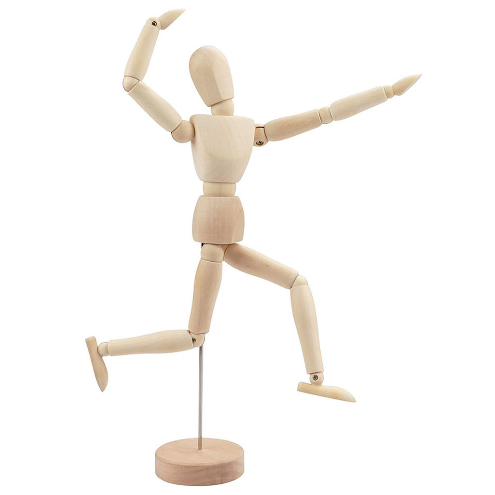 Prachtige houten tekenpop (30 Cm. Hoog) is ideaal voor bewegingsstudies en vergemakkelijkt de origineel getrouwe weergave van de menselijke proporties. De pop is gemaakt van massief hout en verbonden met hoogwaardige schroefverbindingen.