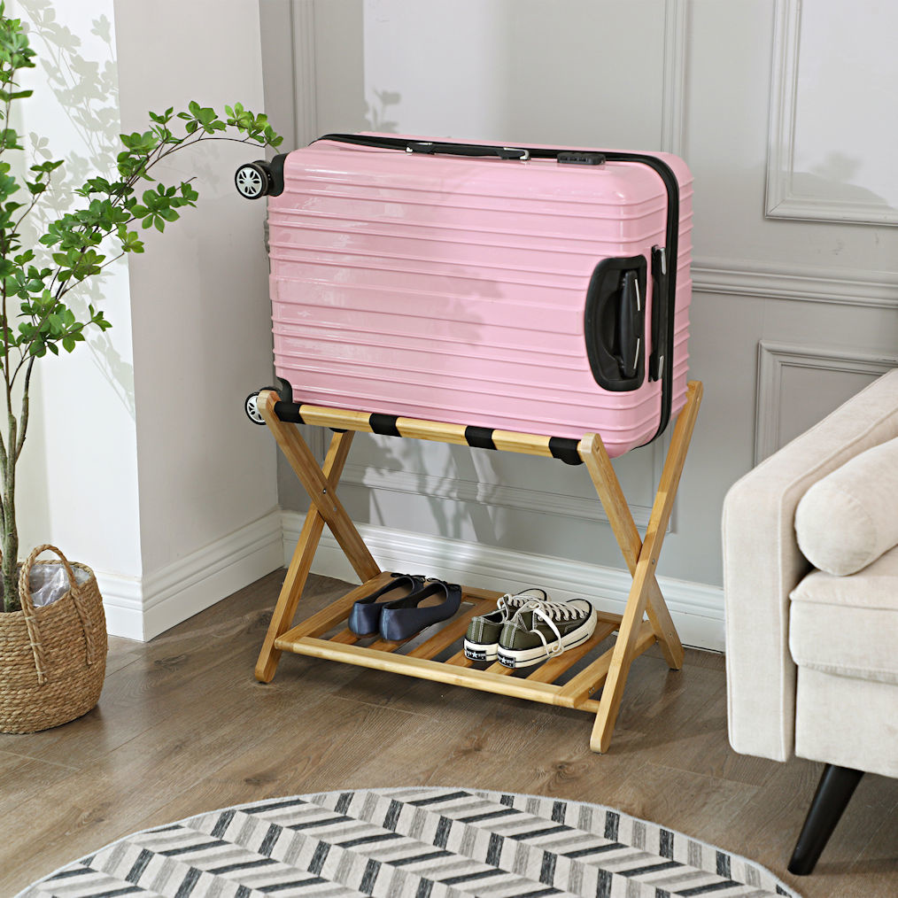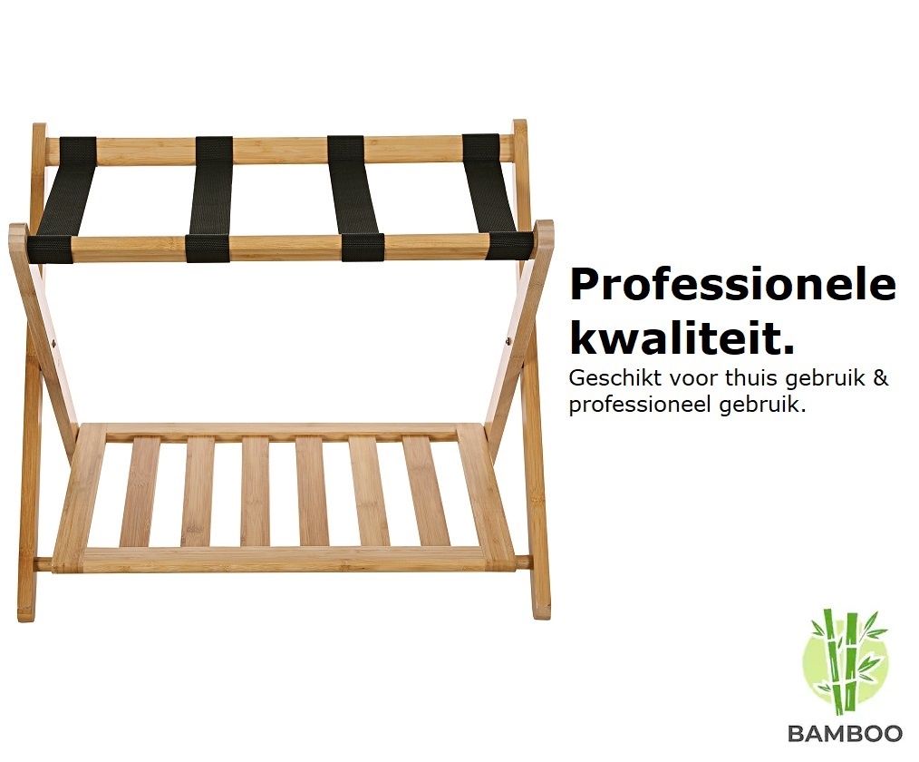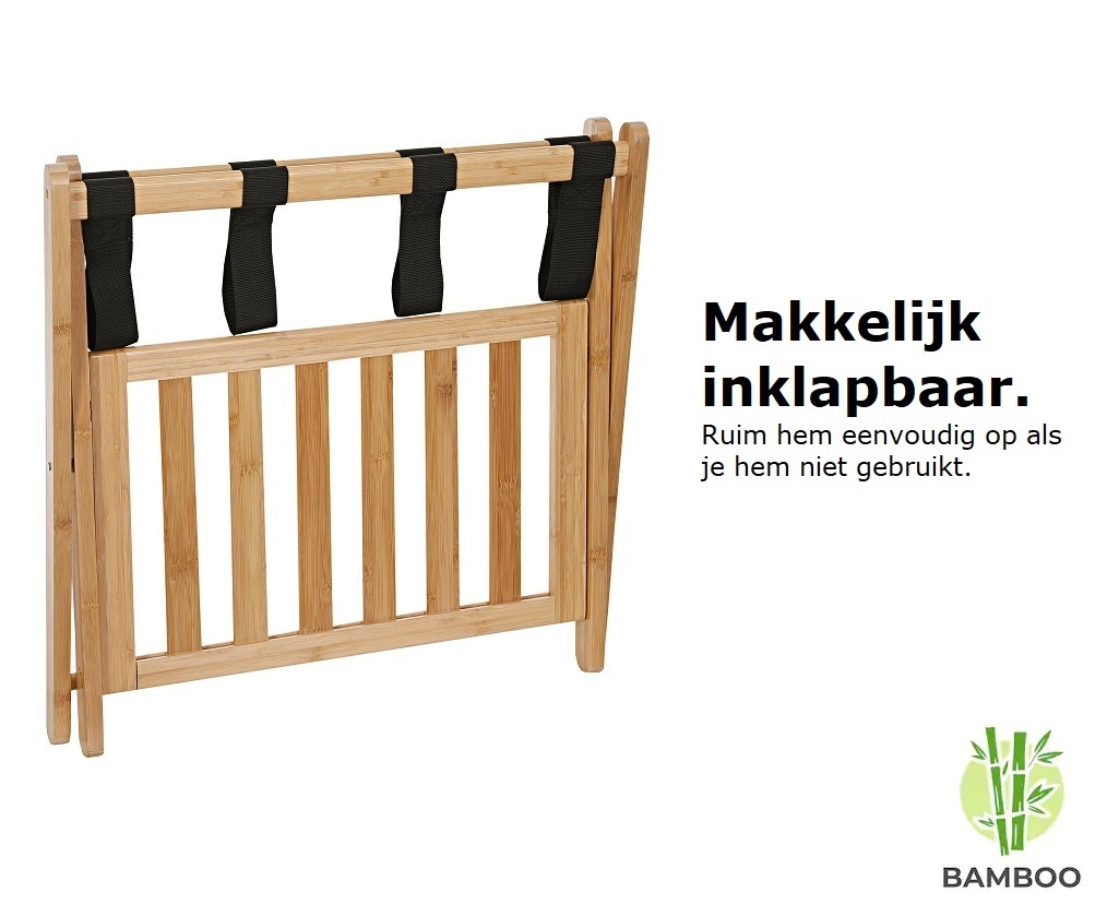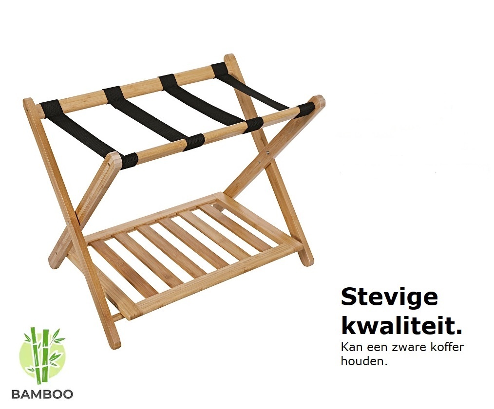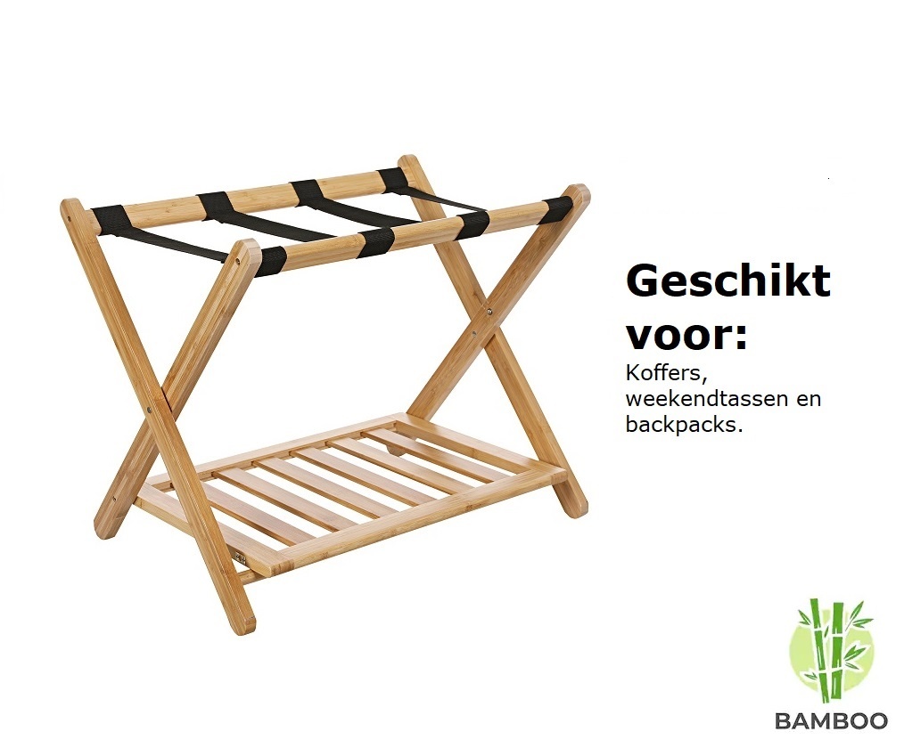 Inklapbaar Bamboe bagagerek voor koffers, weekendtassen en backpacks. Mooi en Stevig. Ideaal voor &, Hotels en thuisgebruik!