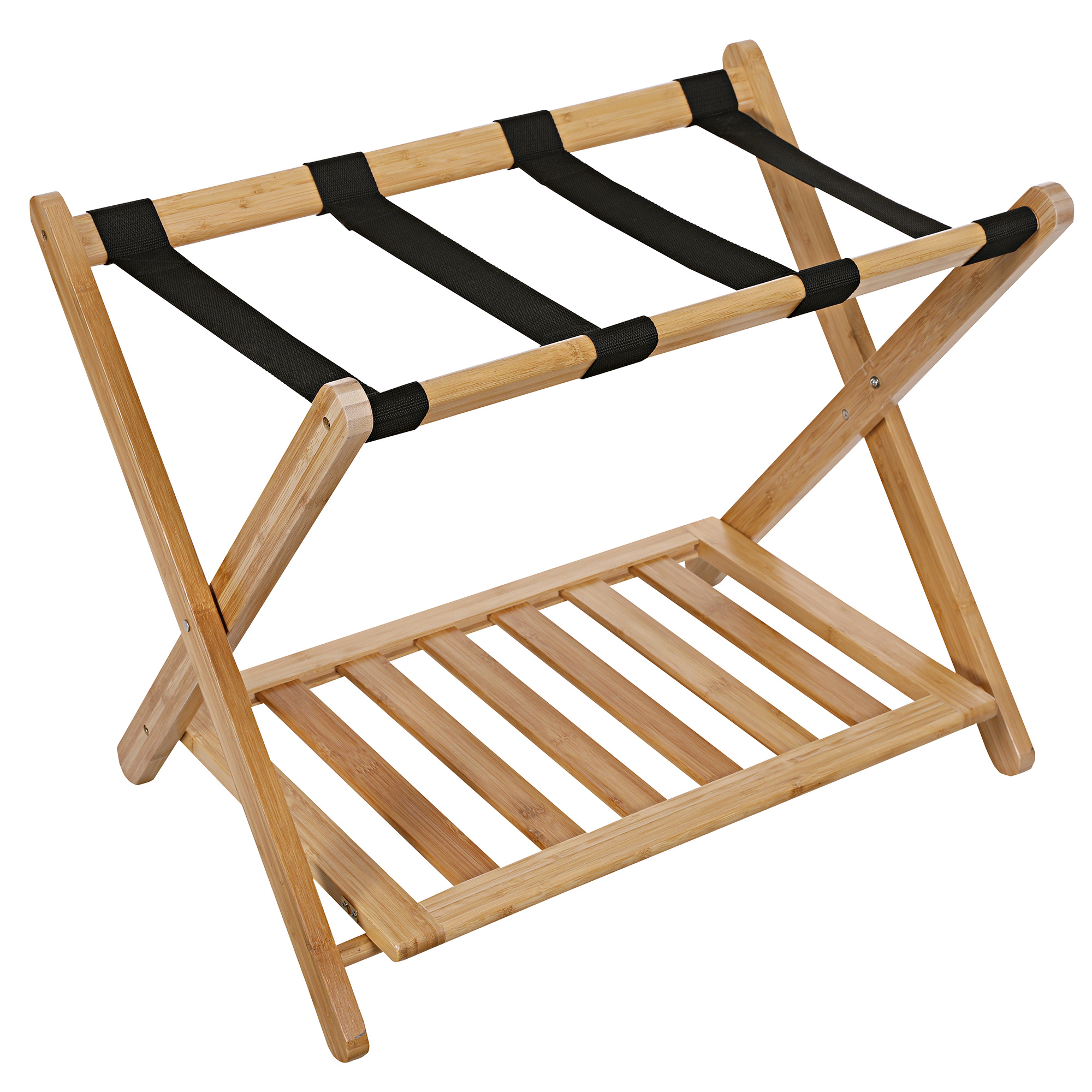 Decopatent Inklapbaar bagagerek van bamboe – Luxe uitvoering met extra plankje - Stevige kofferstandaard van hout voor koffer – Kofferrek - Professionele kwaliteit van Decopatent - Natural