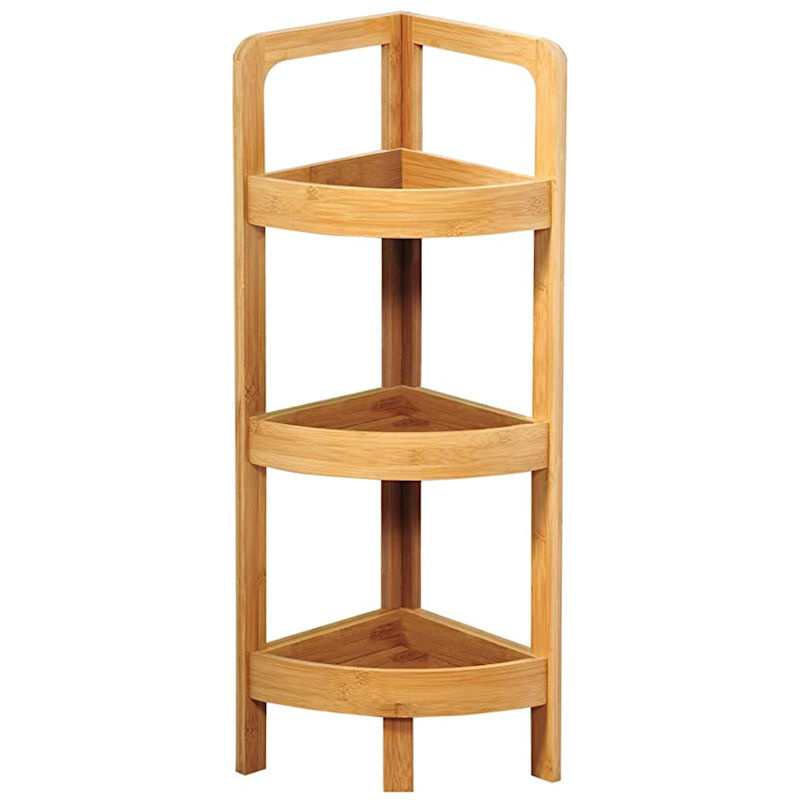Kesper Badkamer Hoek kast FSC Bamboe met 3 Planken | Open opbergkast met 3 planken voor in de Hoek | Badkamerkast Opberg Rek | Hoek Kast meubel | Stellingkast | Afm. 77 x 23 x 23 Cm. | Kleur: Bamboe