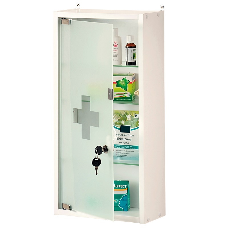 Medicijnkastje met Sleutel slot en Magneet Slot. Veilig alle medicijnen achter slot en grendel met deze fraaie medicijnkast. Voorzien van 2 sleutels en ophanghaken.
