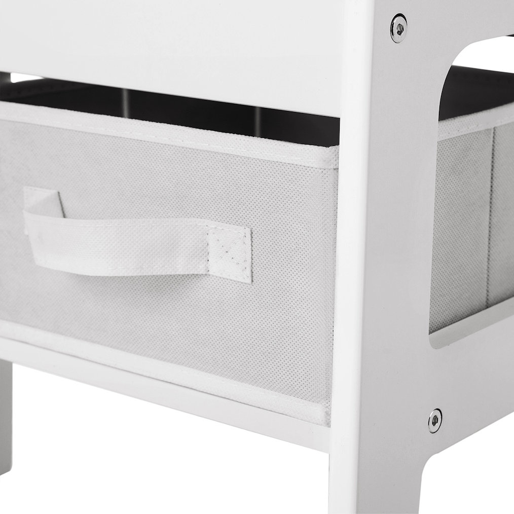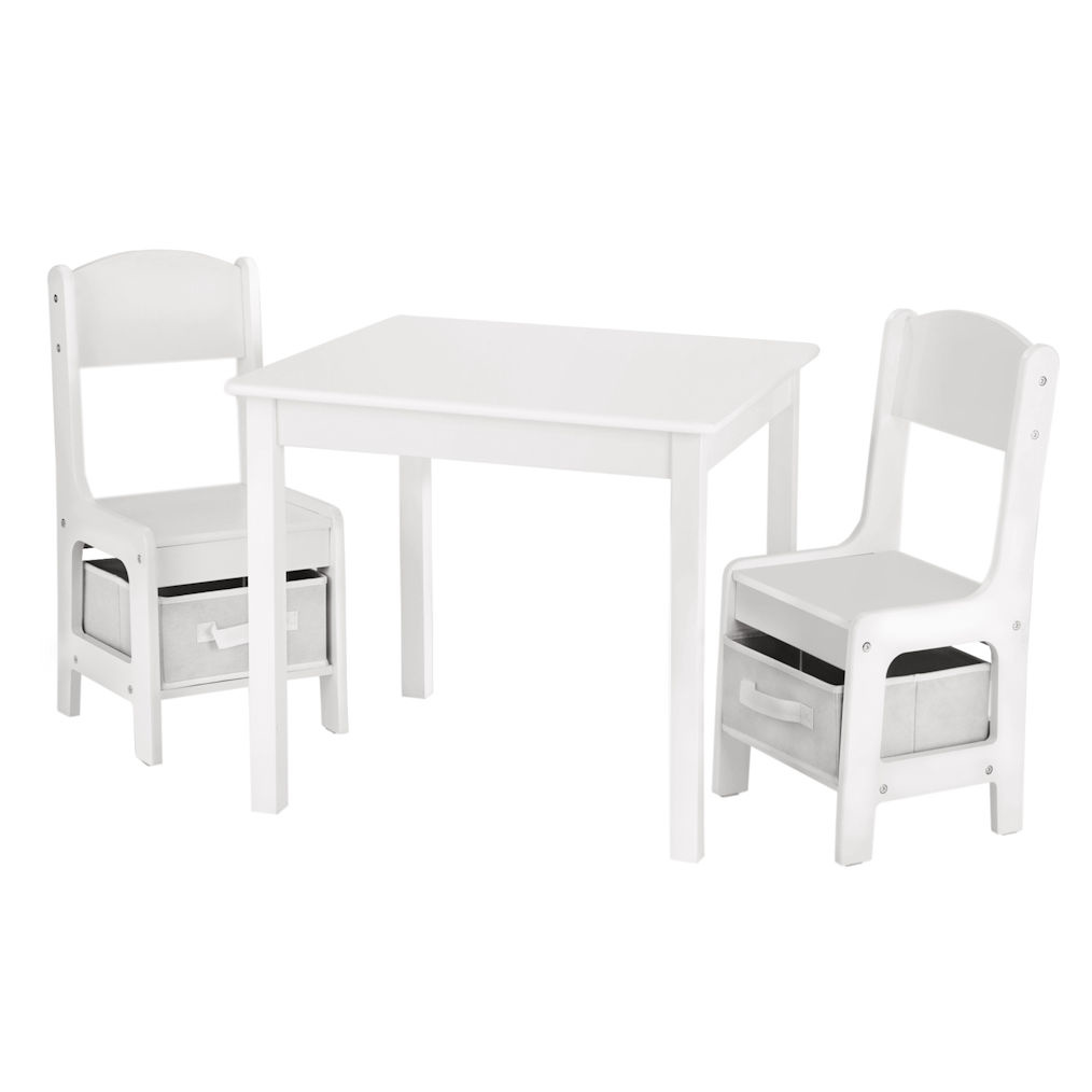 Bij deze set worden 2 opbergbakken meegeleverd. Deze 2 bakken passen perfect op het plateautje onder de stoeltjes. De 2 bakken zijn uiterst geschikt om speelgoed in op te bergen. Zo kan je kindje zelf zijn speelgoed pakken en weer opbergen.