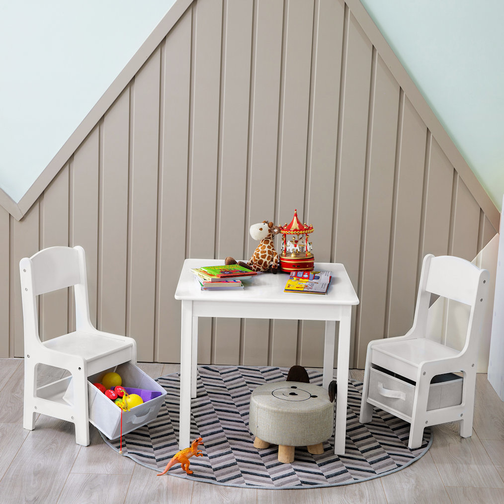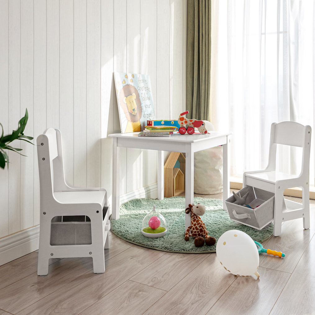Complete set: 1 kindertafel met 2 stoeltjes. Hiermee creëer je een heerlijke plek voor je kindje(s). Aan hun eigen tafeltje kunnen ze heerlijk spelen, knutselen, puzzelen en lezen. De set is veilig en van hoge kwaliteit.