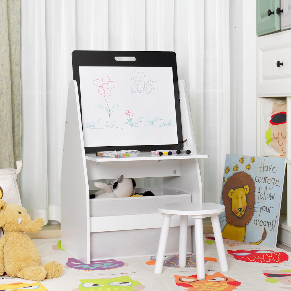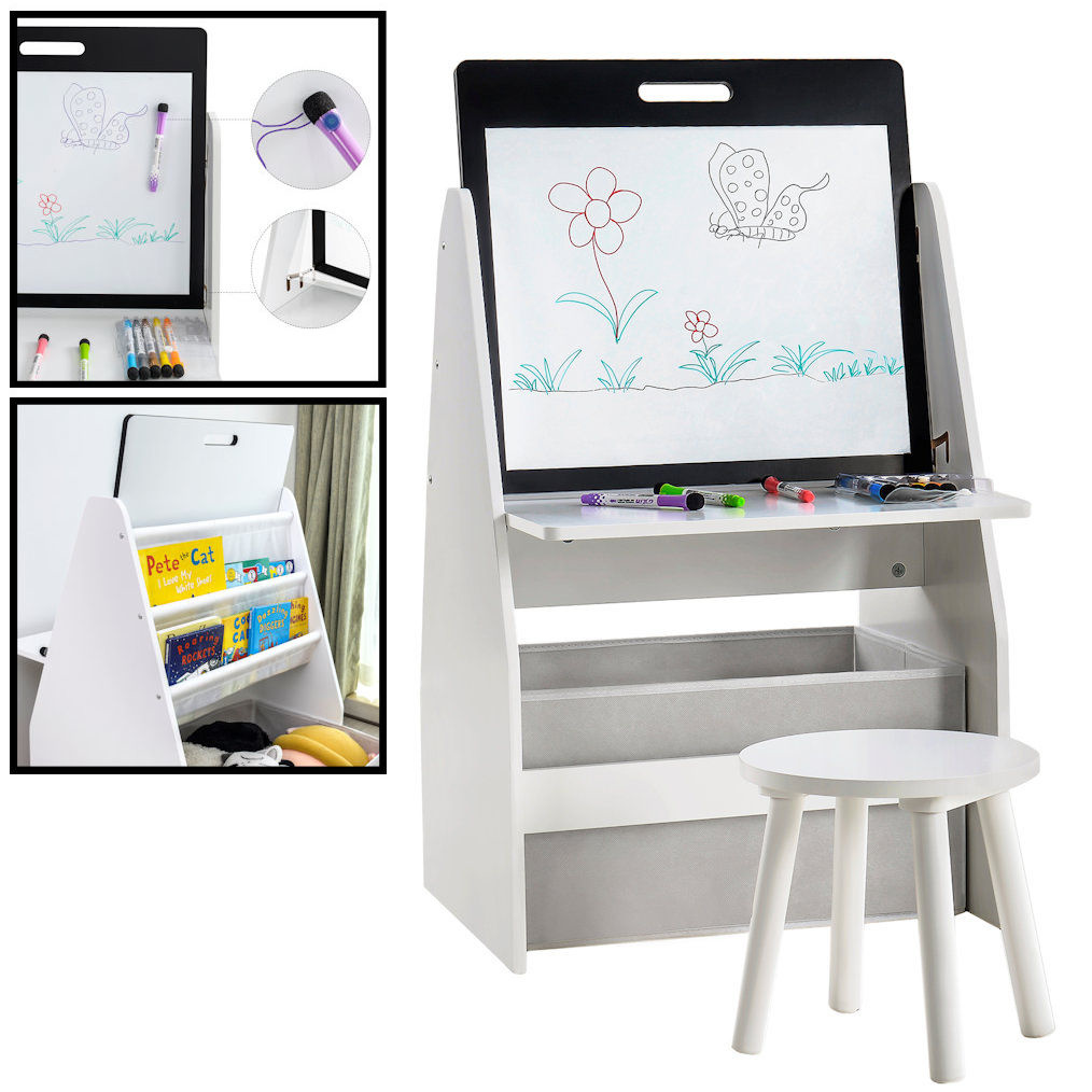 Decopatent Kleurtafel / knutseltafel / speeltafel / teken tafel / boekenkast voor kinderen - Inclusief krukje - Met opbergruimte voor boeken, knuffels en speelgoed - Multifunctioneel Kinderbureau van hout, in kleur wit - Met accessoires - Decopatent®