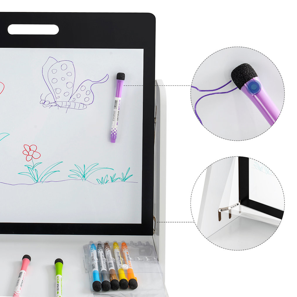 Dit meubel is multifunctioneel. Daarmee speelt het uitstekend in op de wensen van je kindje. Zo is het ten eerste een prachtige tekentafel. Op het whiteboard kunnen de mooiste en fantasierijkste tekeningen gemaakt worden. Handig aan tekenen op een whiteboard is dat uitwissen snel en makkelijk gaat. Zo kan je blijven tekenen en heb je gegarandeerd urenlang speelplezier.