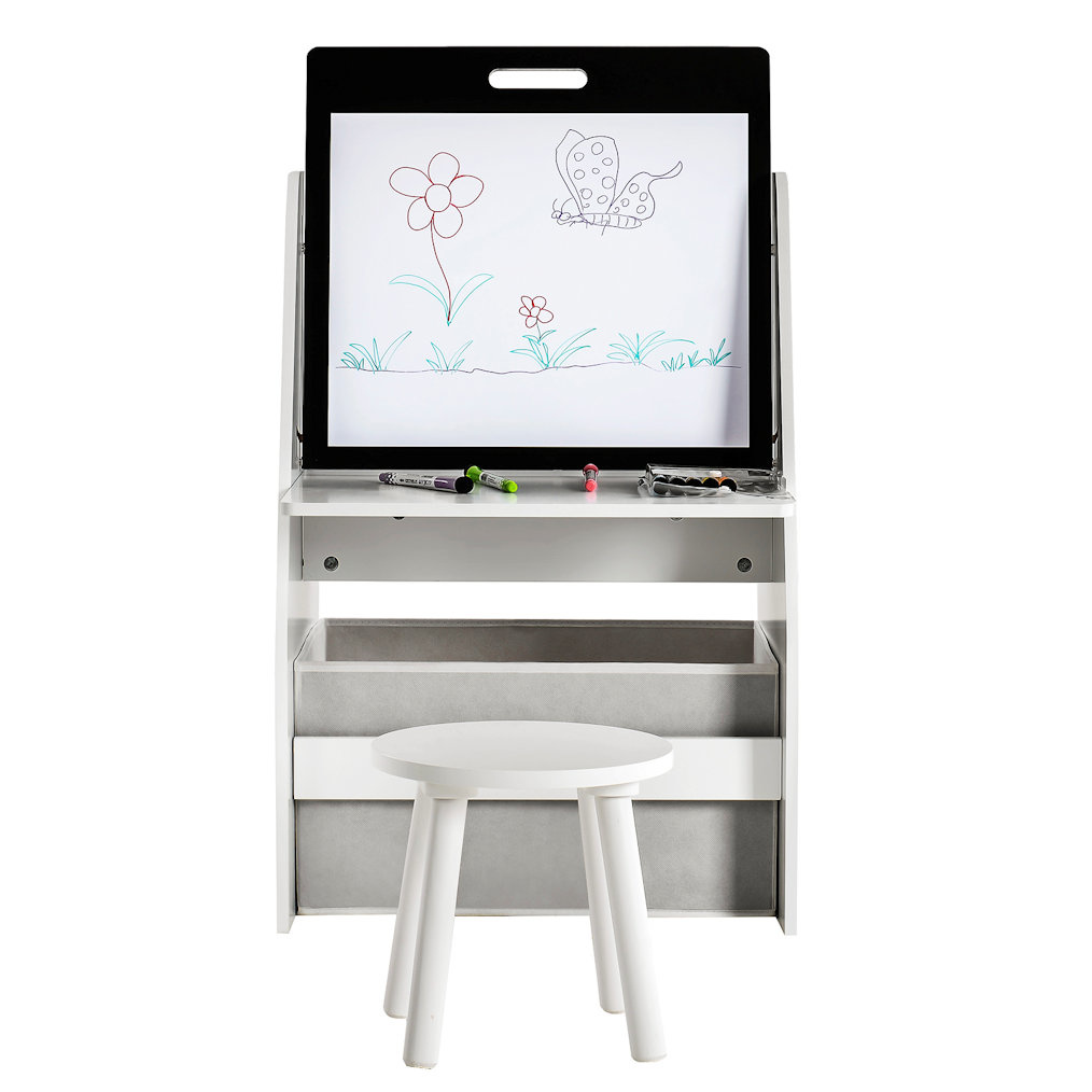 Het whiteboard is verstelbaar en kan in 3 verschillende standen geplaatst worden. Zo pas je makkelijk de hoek van het whiteboard aan. Met het aanpassen van de hoek kan je ook aanpassen hoe dicht je kindje bij het whiteboard zit. Daardoor gaat het meubel lang mee!