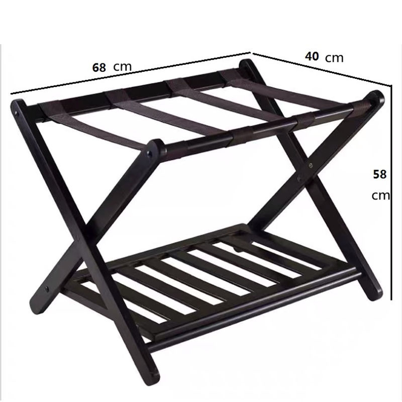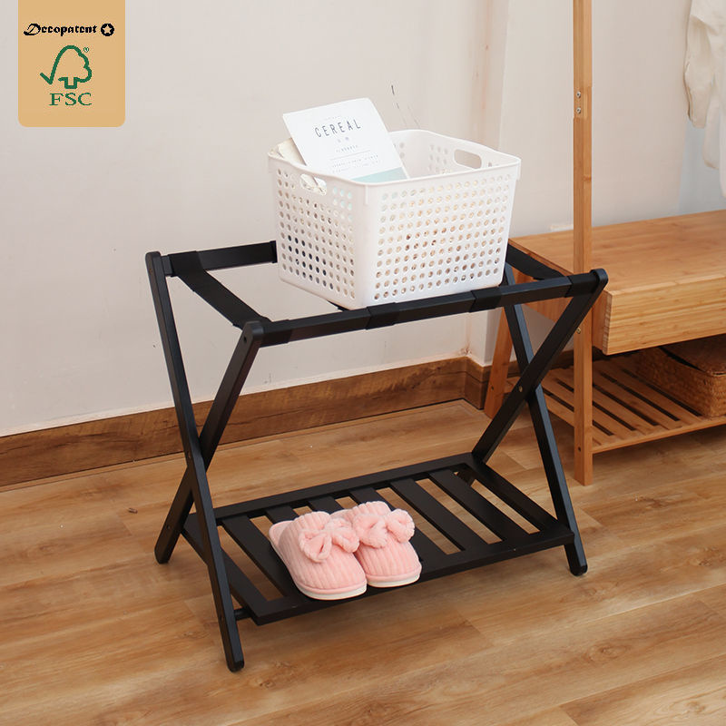 Decopatent Kofferstandaard inklapbaar met extra legplank - Kofferrek van hout - Bagagerek voor koffers voor op reis - Koffer standaard klapbaar - Kleur: Zwart - Decopatent®