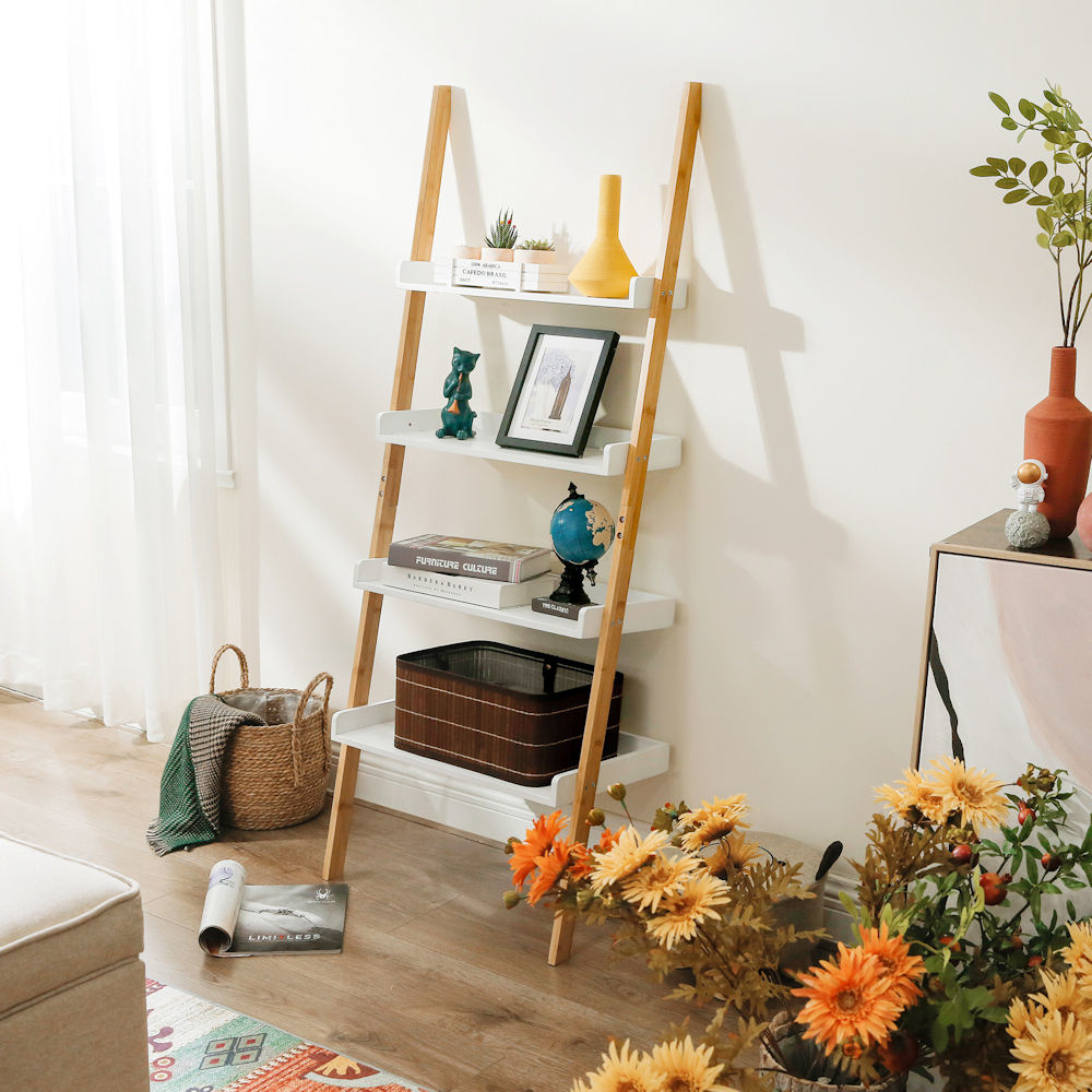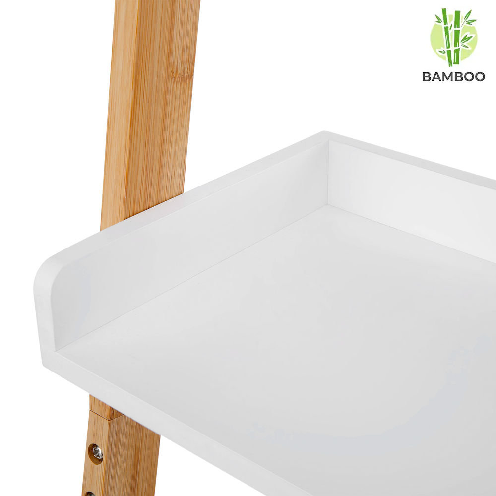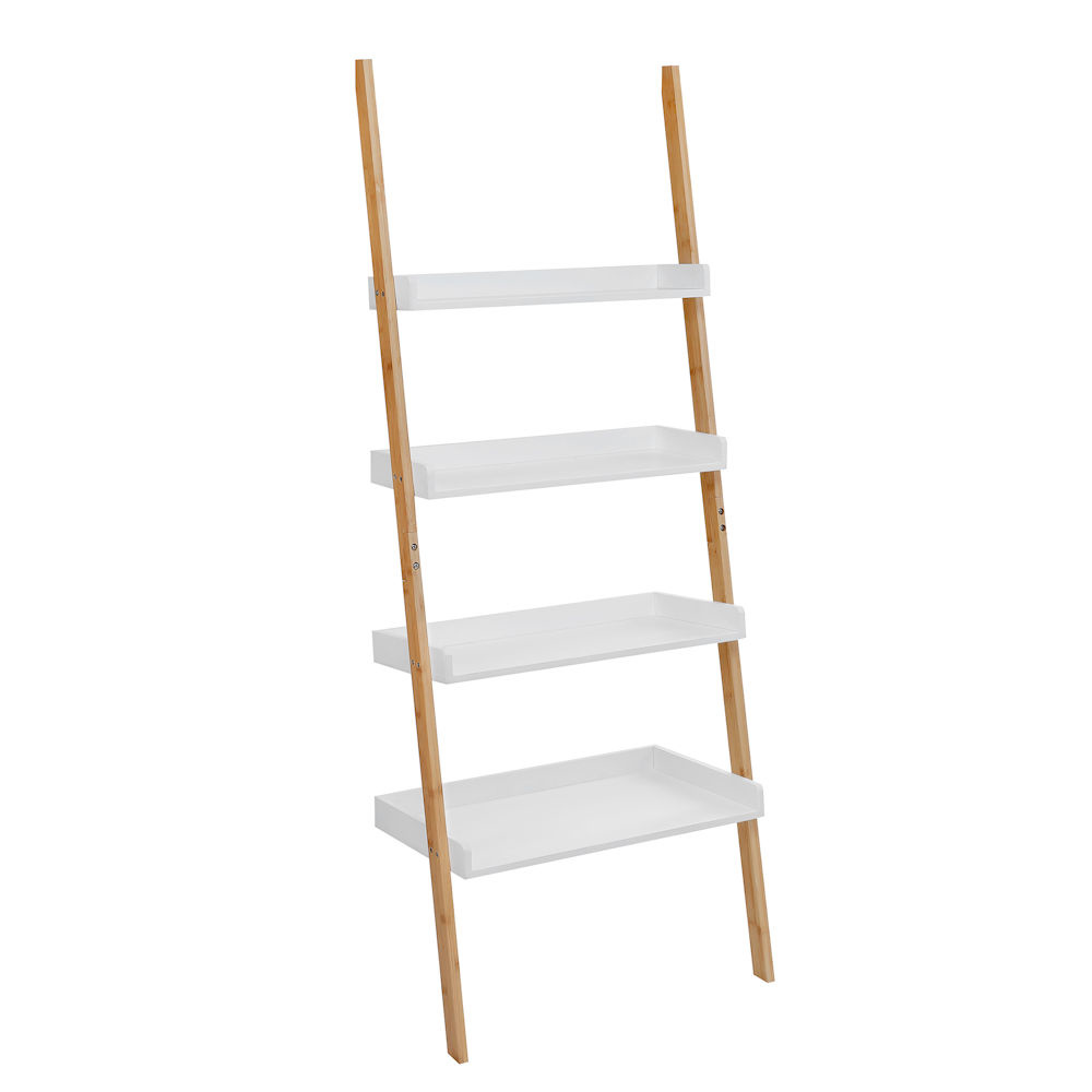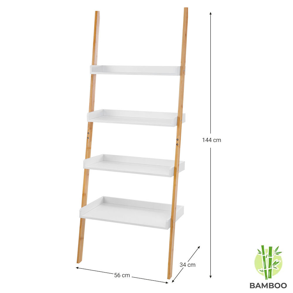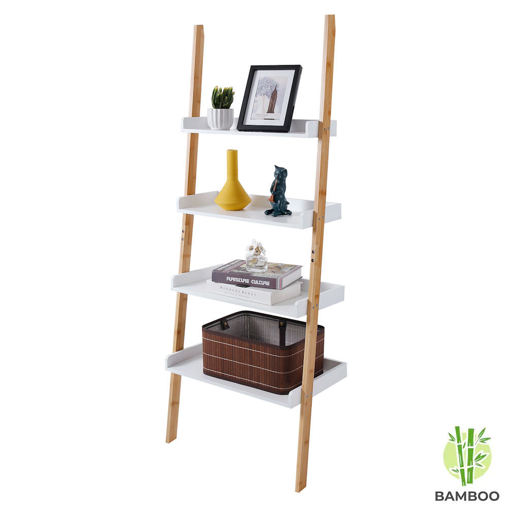 Decopatent Ladderrek van bamboe hout - Houten decoratie ladder - Open ladderkast / bamboe ladder / plantentrap / boekenkast / traprek / ladder rek - luxe opbergrek met 4 treden - Wit - Decopatent®