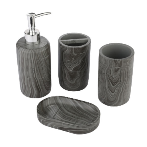 Decopatent Luxe 4 Delige Badkamer / Toilet accessoires Set - Kunsstof Badkamerset - Grijs Badkamer- & Toiletset - Badkamer accessoires set - Tandenborstelhouder / Beker / Zeepdispencer met pompje / Zeepschaal - Grijs Marmer Kleur - Decopatent®