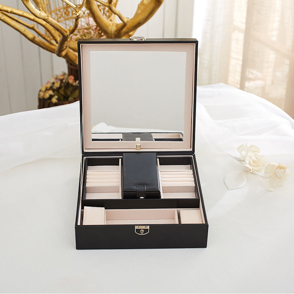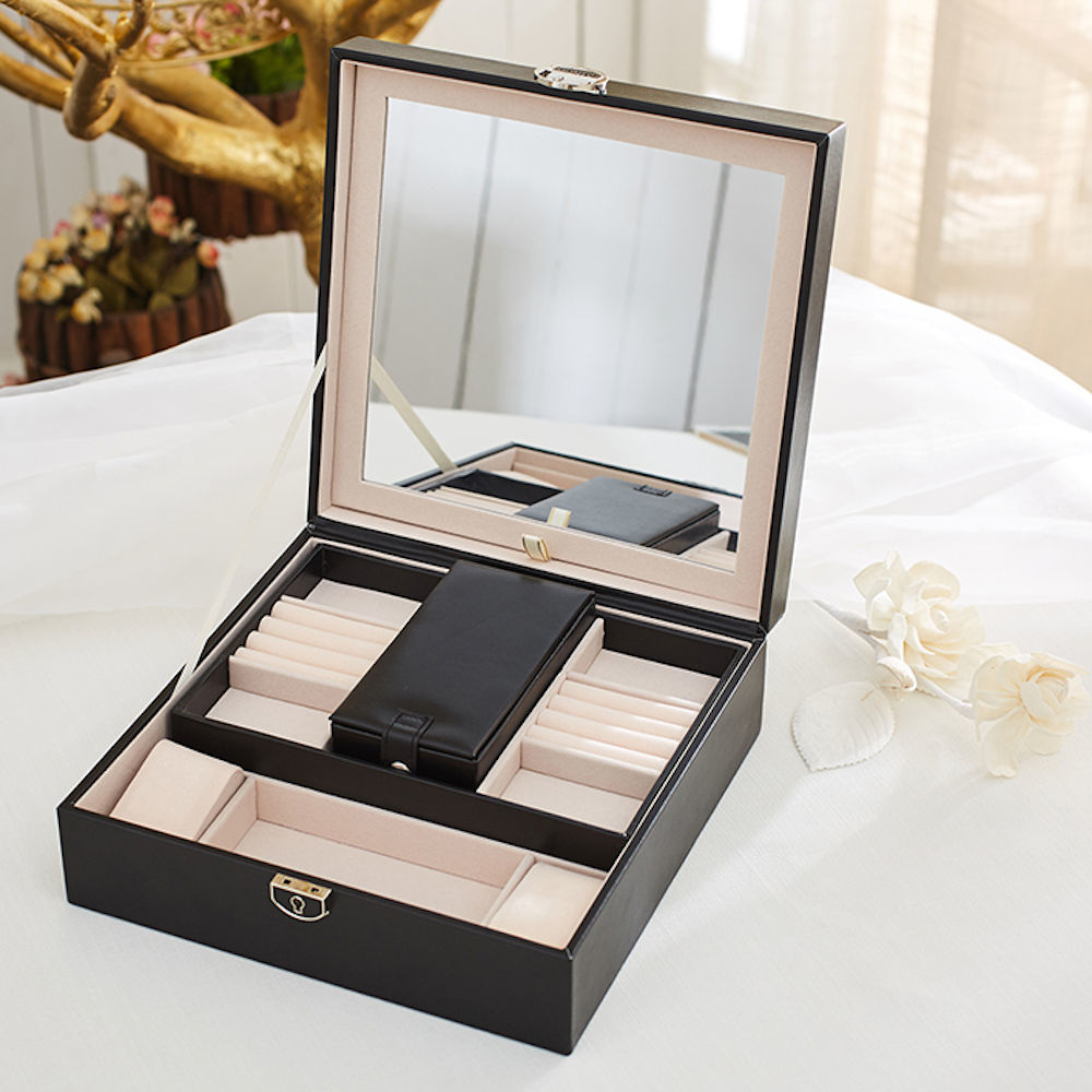 ✅ Zwarte Luxe Sieradendoos met Spiegel en 23 Vakken. Juwelendoos voor het opbergen van: Sieraden, Oorbellen, Ringen, Halskettingen, Armbanden, Horloge etc. Het vakken zijn uitneembaar. Dus het kleinste vak, kun je ook bijvoorbeeld eenvoudig meenmen in jouw handtas.